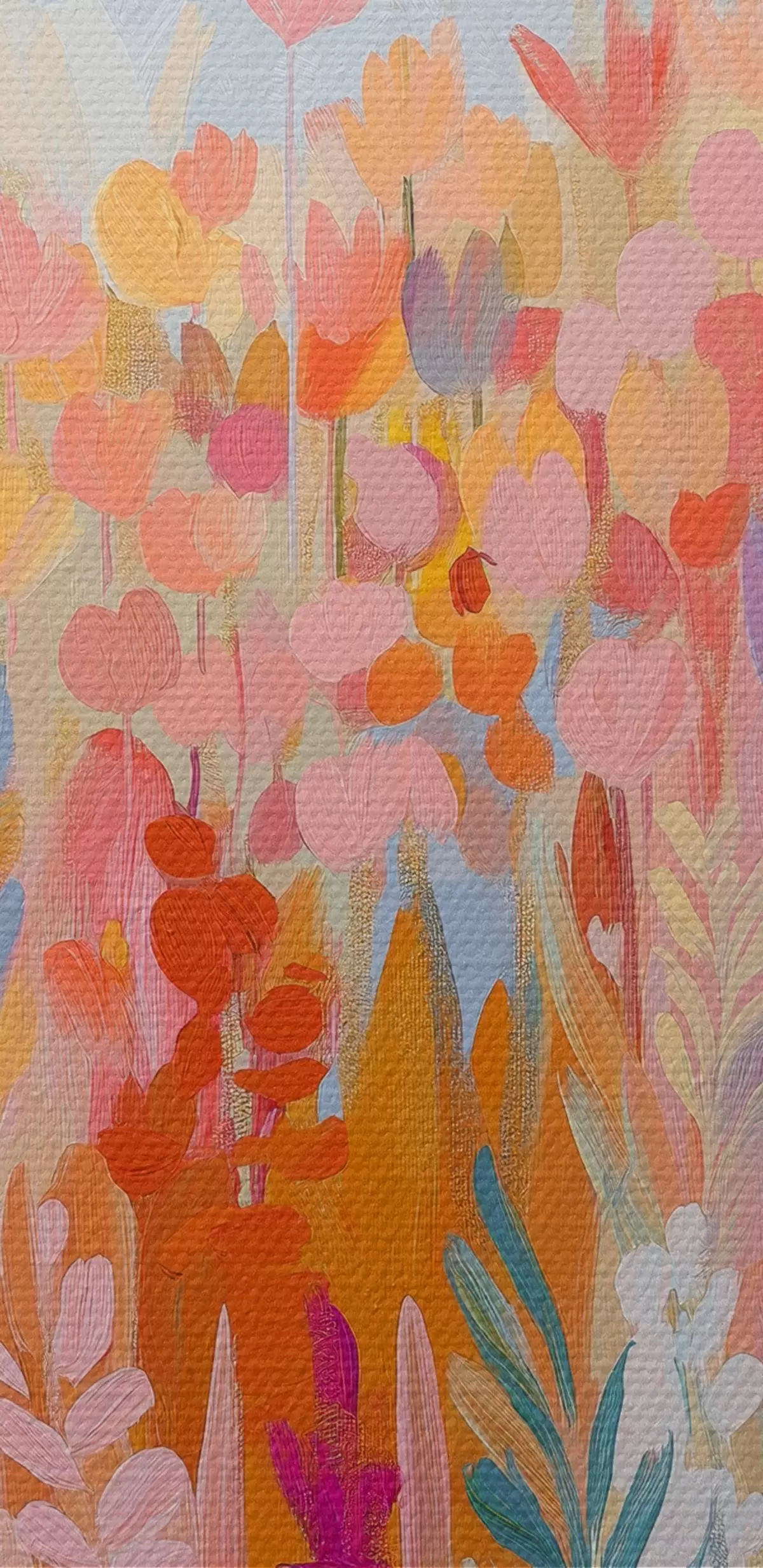 Het schilderij kan direct na ontvangst worden opgehangen. Het schilderij wordt opgespannen op een 2 cm breed houten spieraam.