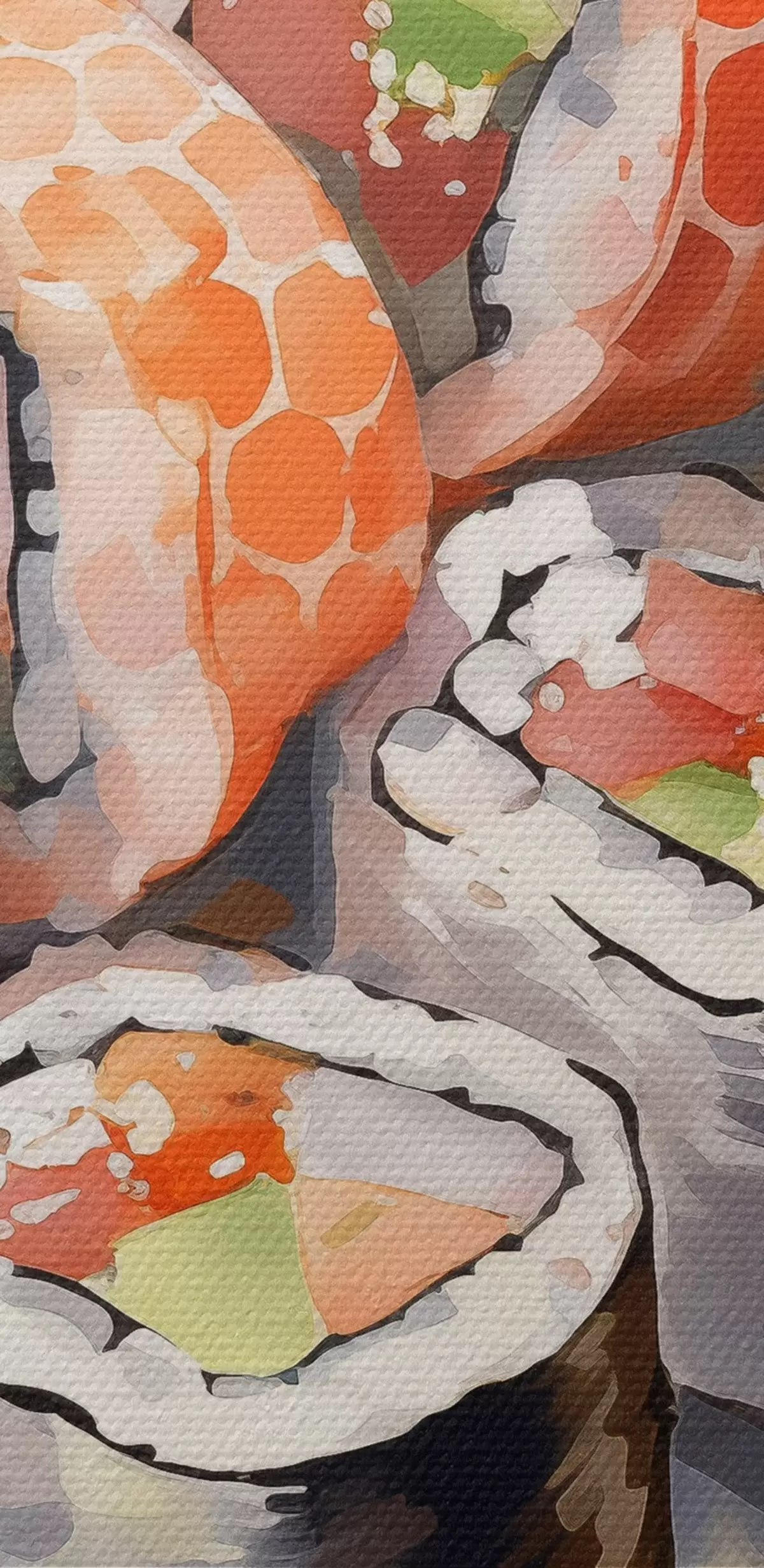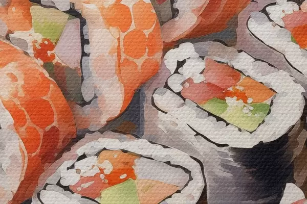 Afbeelding Sushi op een bord, aquarel, bloemig, Japans Nr r41179