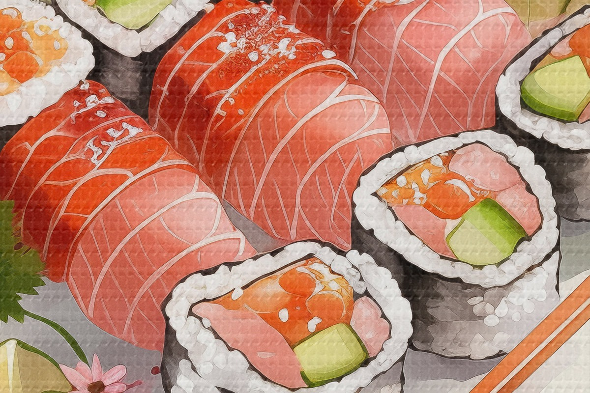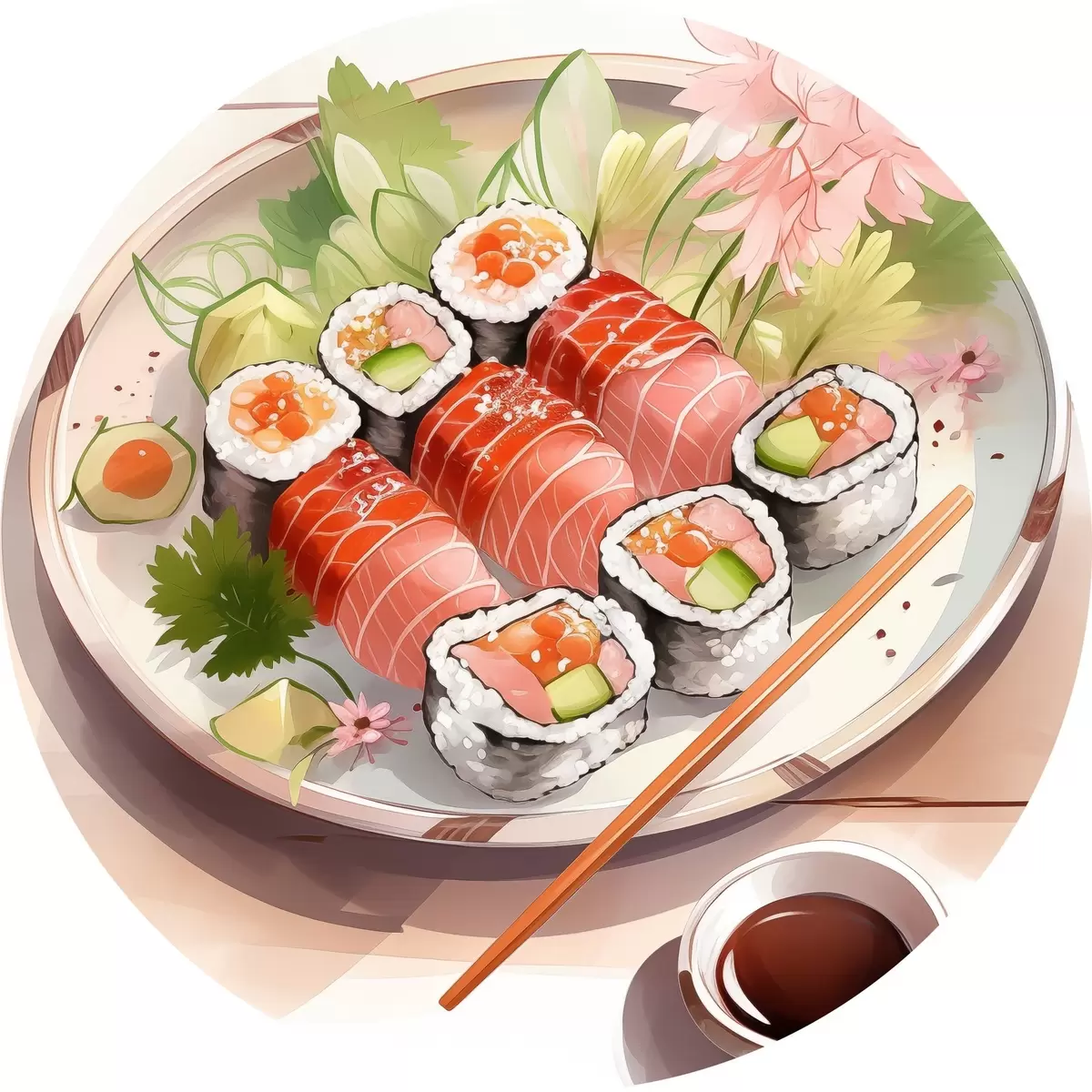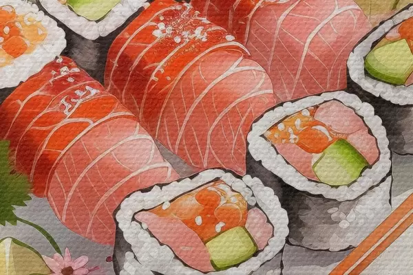 Afbeelding Aquarel sushi, bloemig, Japans Nr r41181