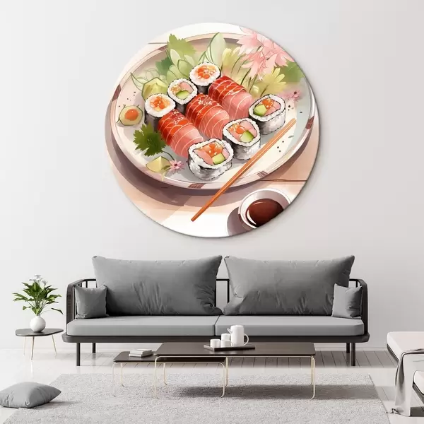 Ronde schilderijen Aquarel sushi, bloemig, Japans r41181