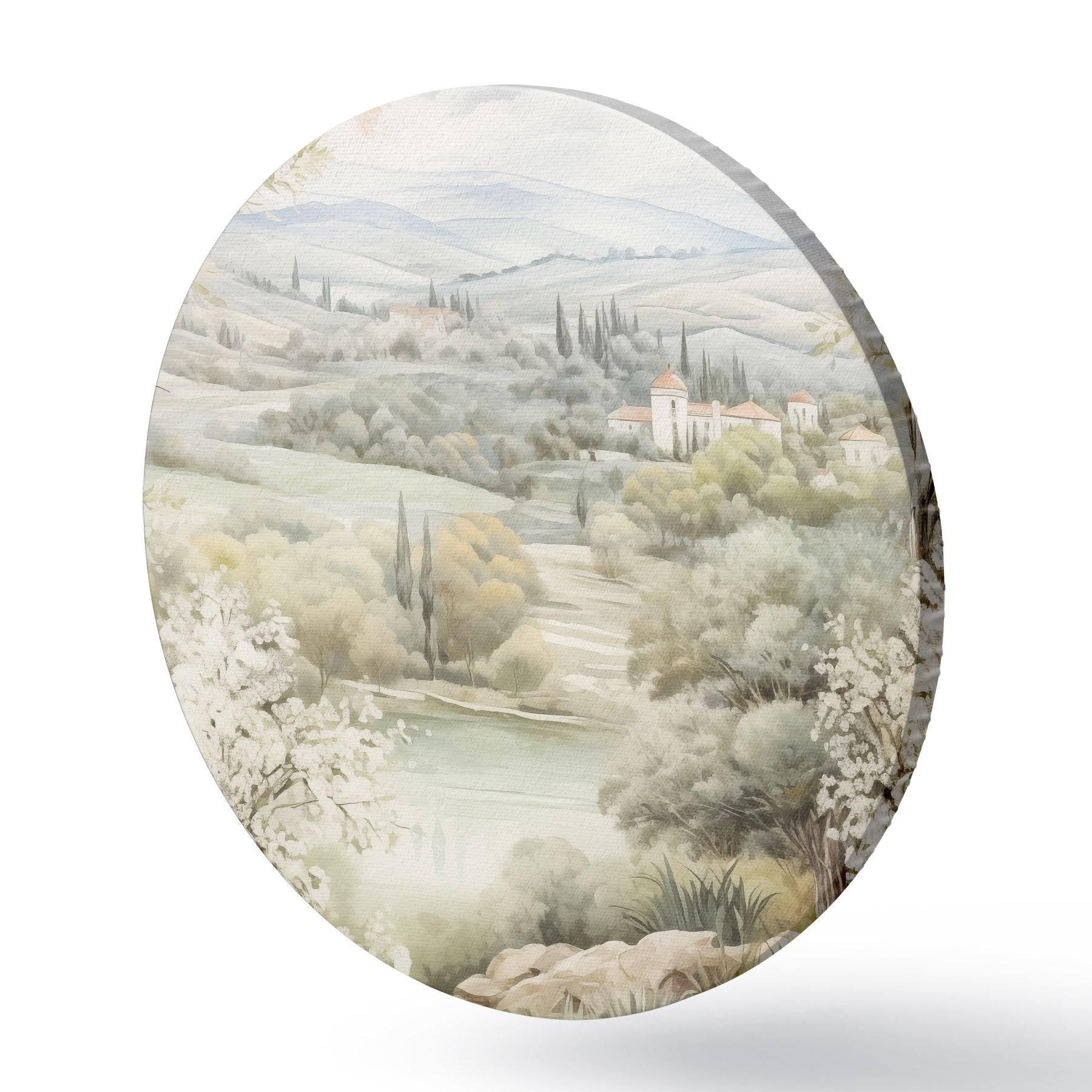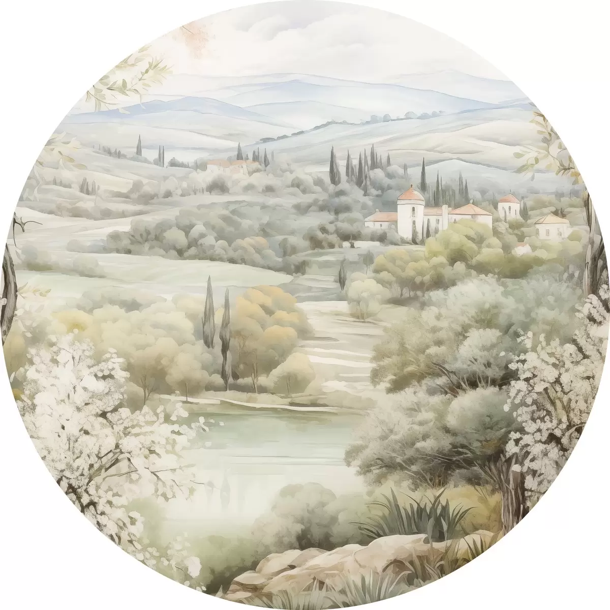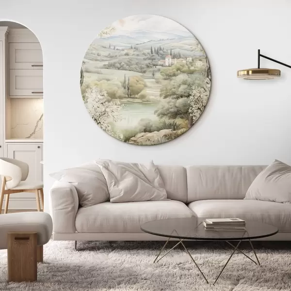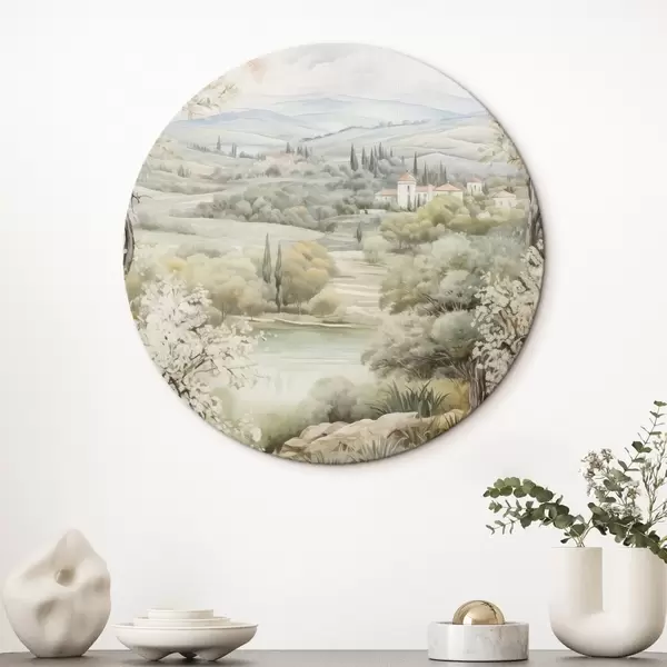 Ronde schilderijen Natuurbloemen, zachte aquarelkleuren, bomen en bloemen, meer r41224