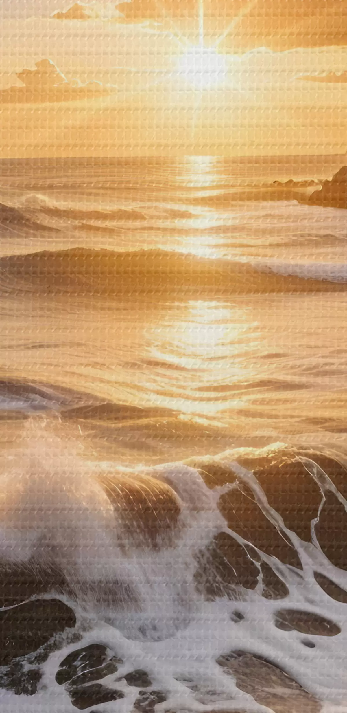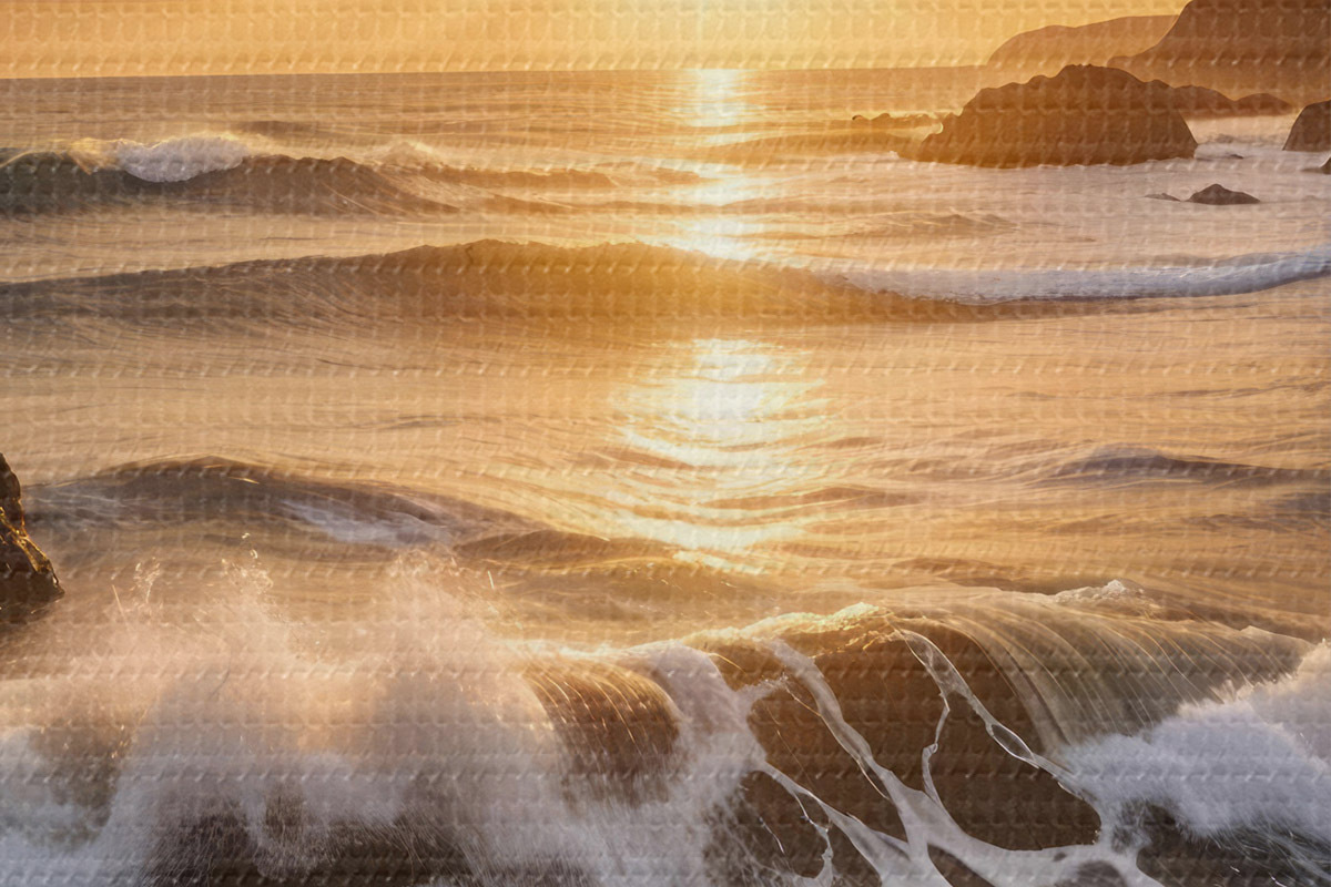 Afbeelding Dramatische zonsondergang boven de rotsachtige kust, met beukende golven en dramatische wolken in de lucht Nr r41245