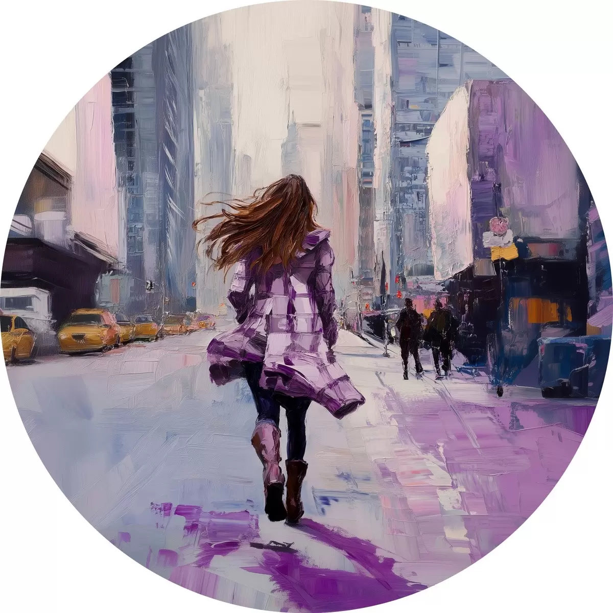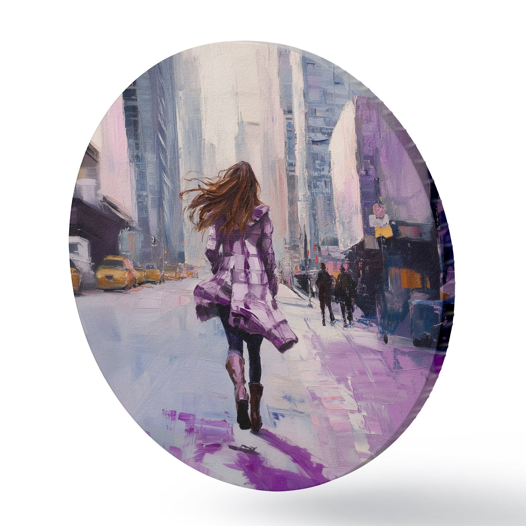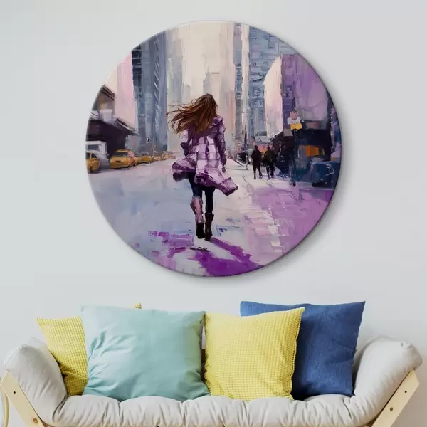 Ronde schilderijen Meisje in paarse jas r41345