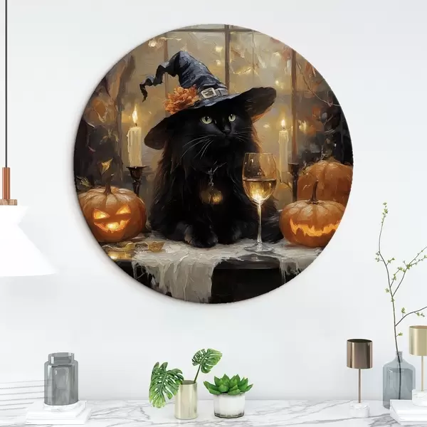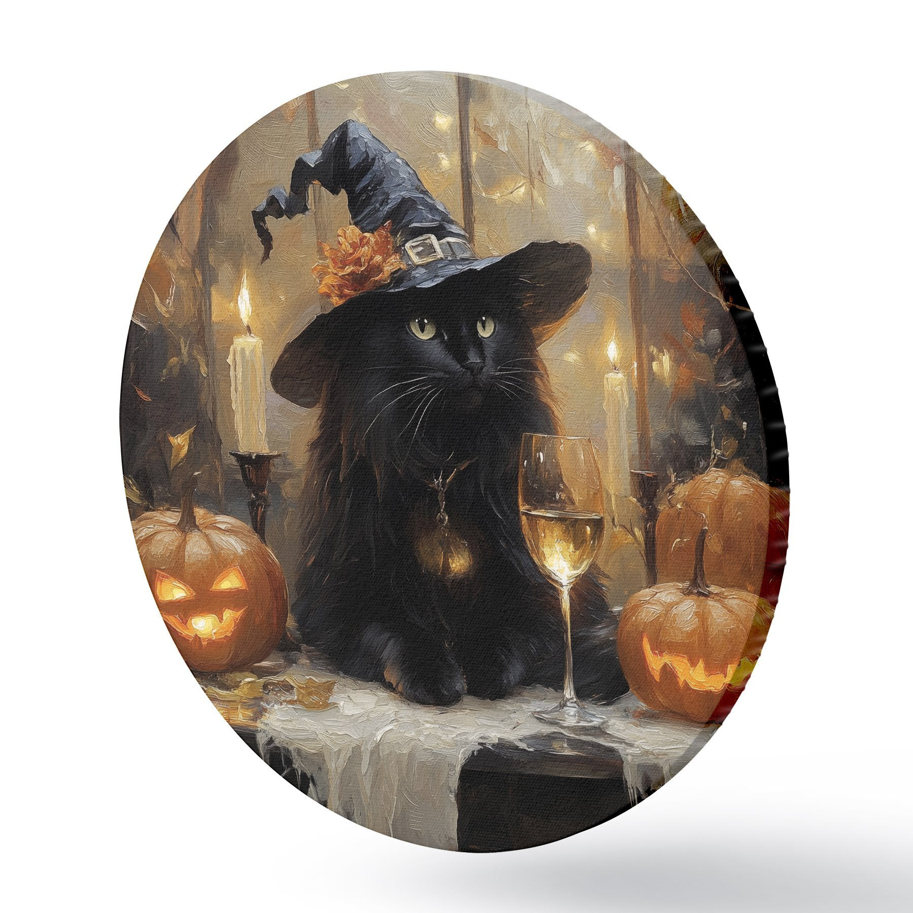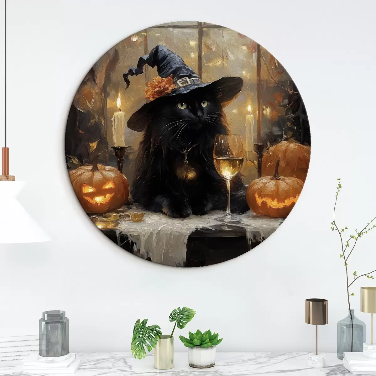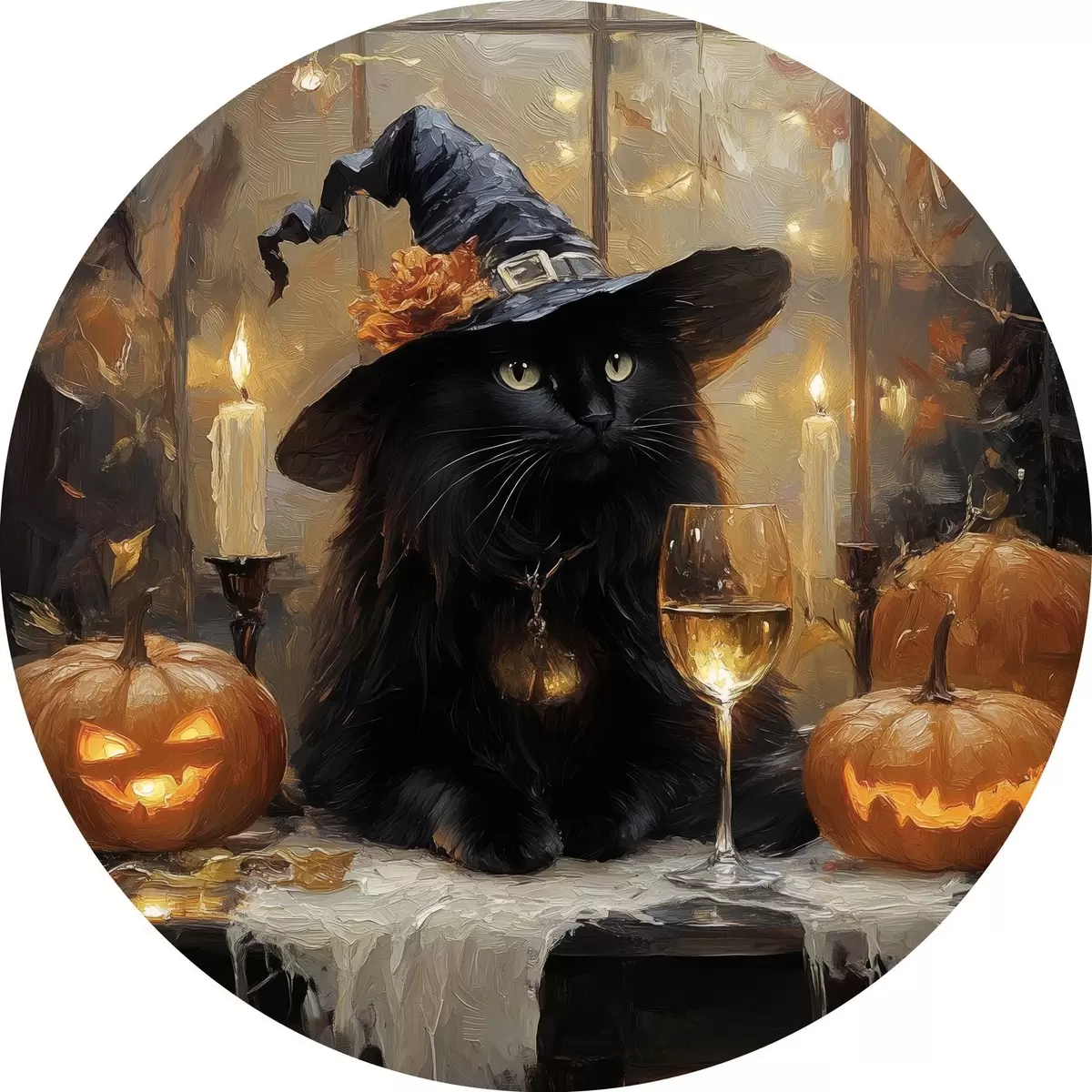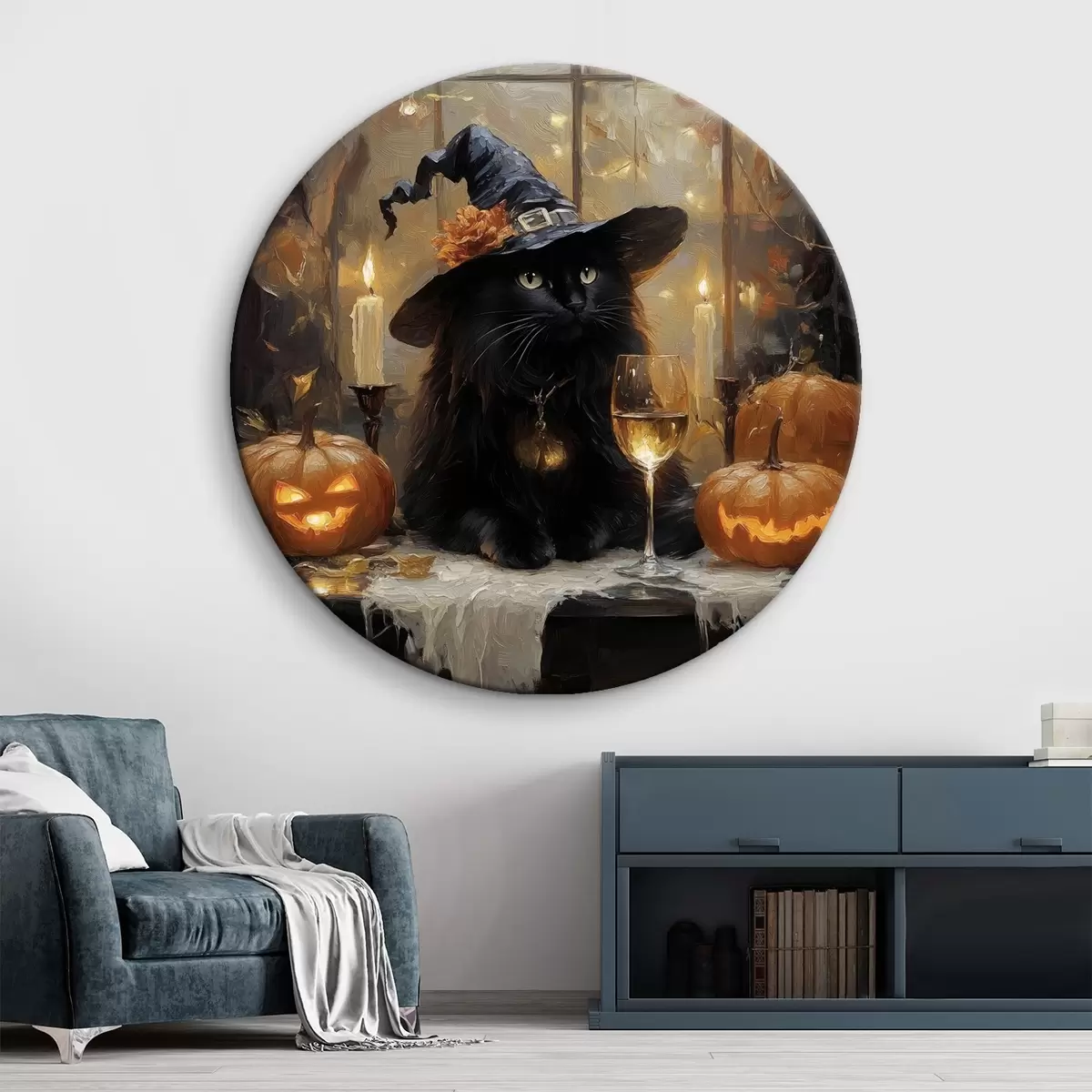 Ronde schilderijen Zwarte kat met pompoenen r41349