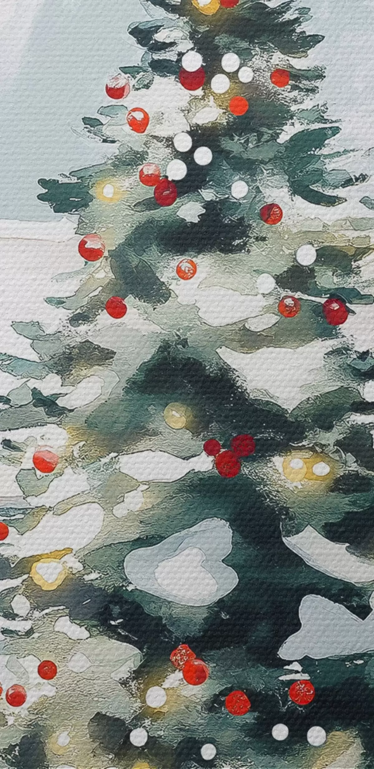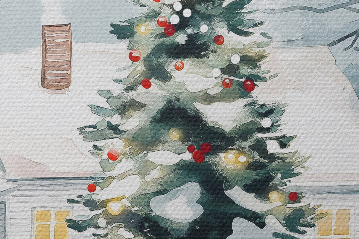 Afbeelding Winterstad, versierde dennenboom, kerstmis, aquarel Nr r41364