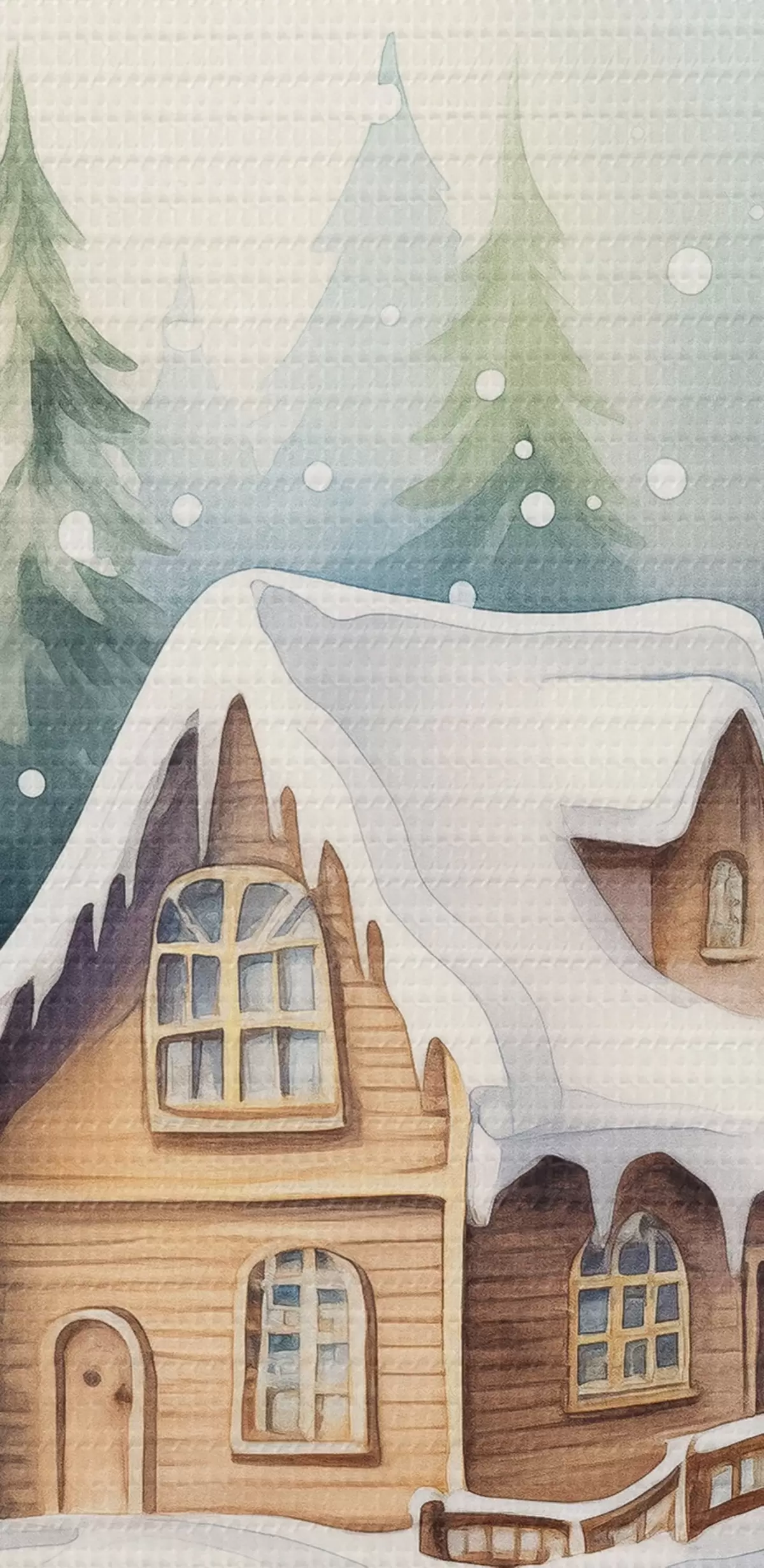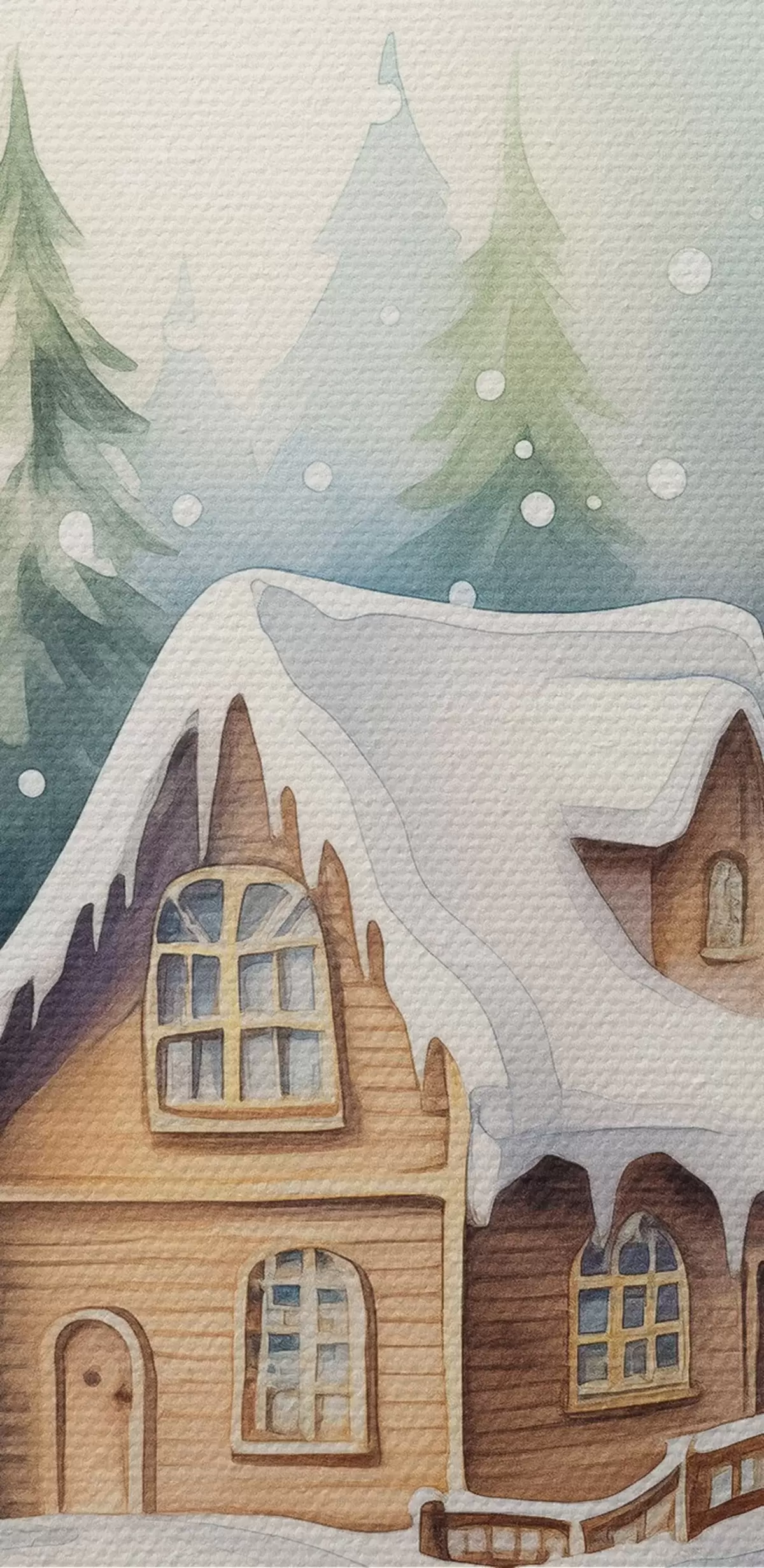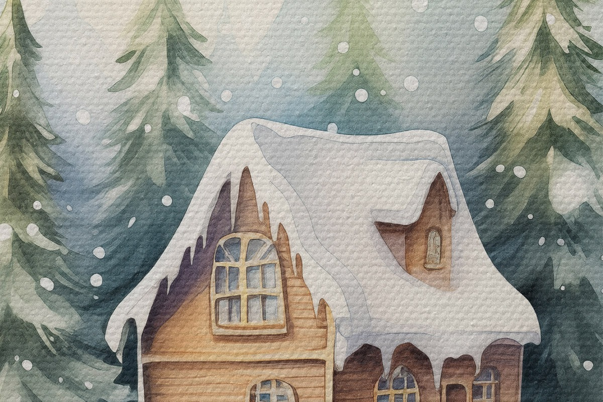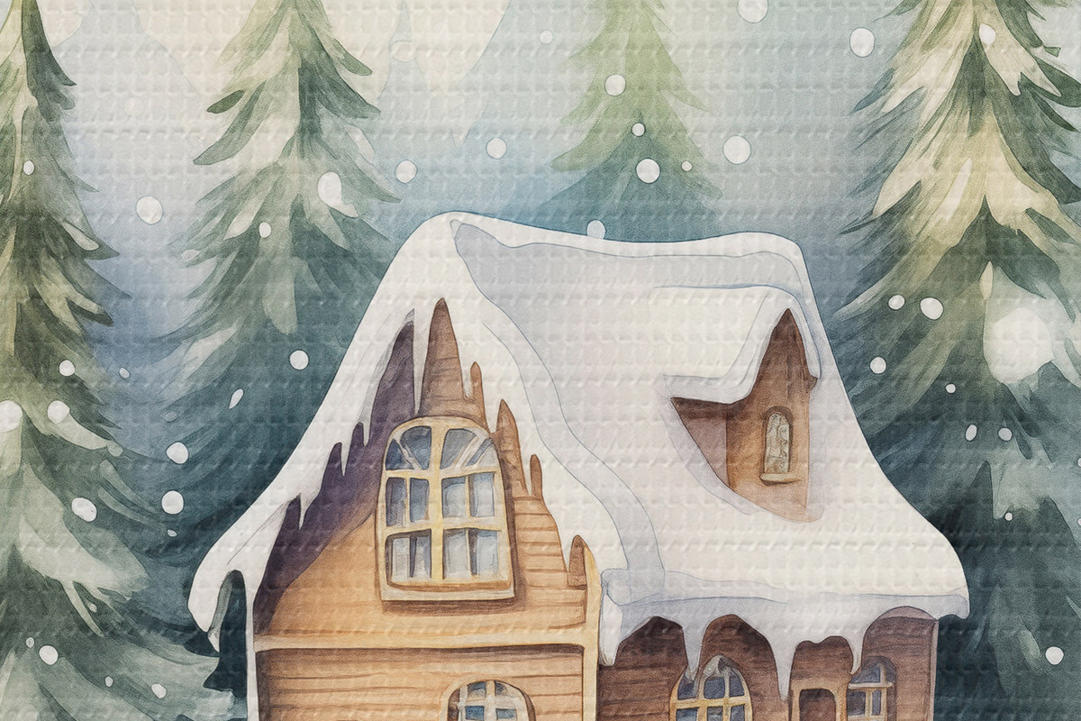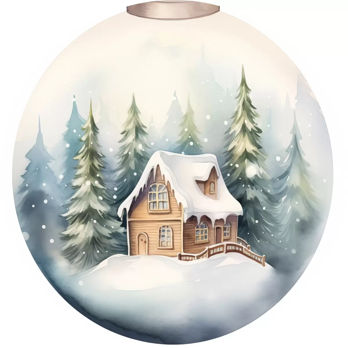 Afbeelding Aquarel kristallen bol met winterlandschap, huis in het bos, sneeuw Nr r41366