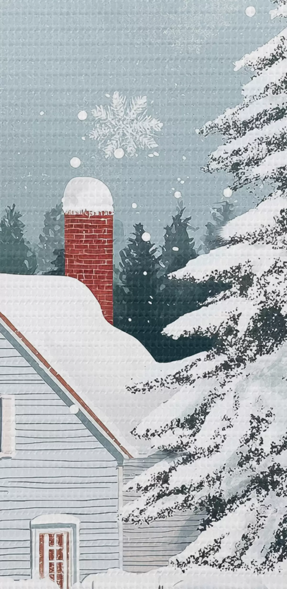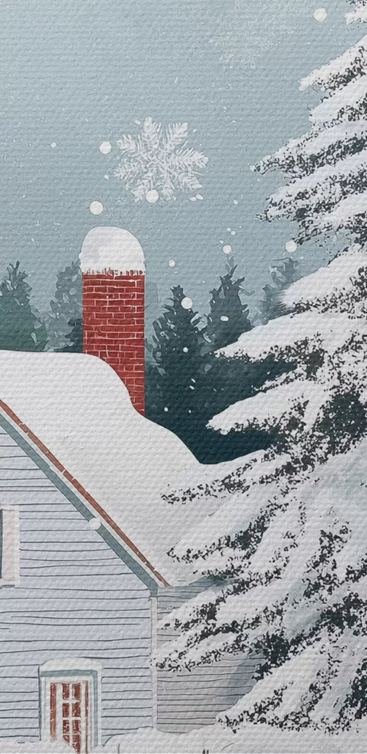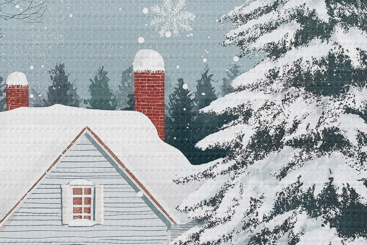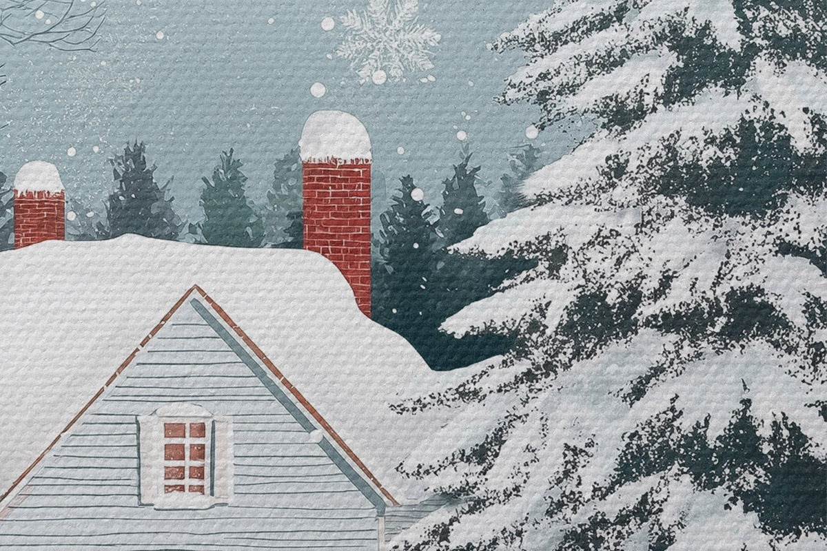 Afbeelding Winterscène met huis bedekt met sneeuw, bos, pijnbomen Nr r41369