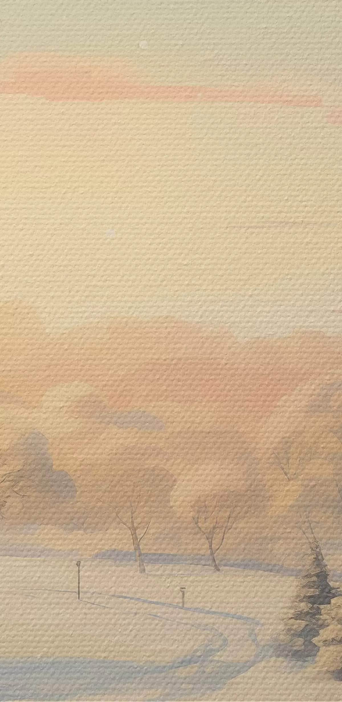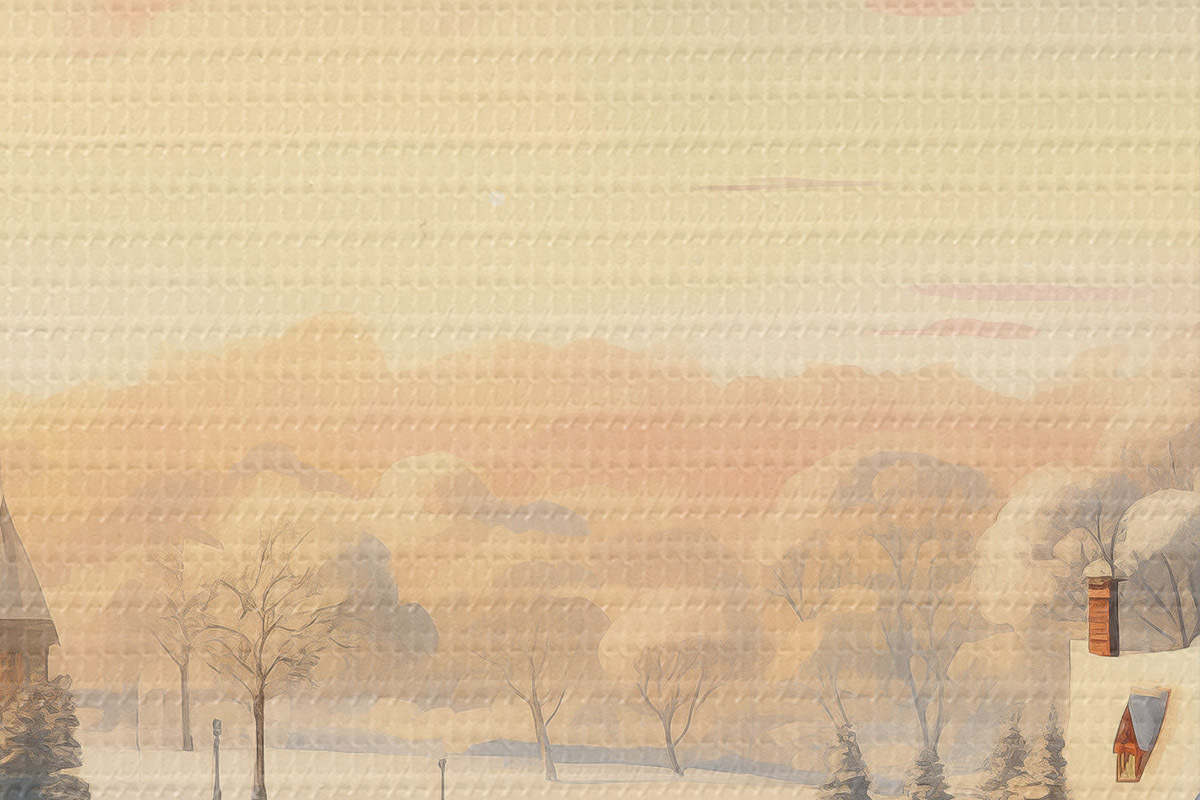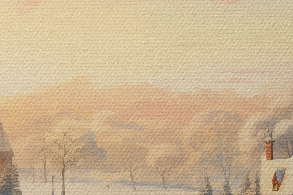 Afbeelding Winterlandschap, huizen, zonsondergang, bomen, aquarel Nr r41383