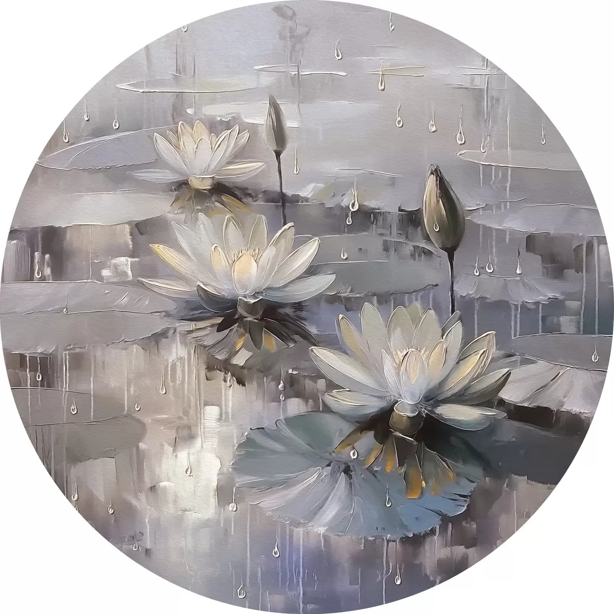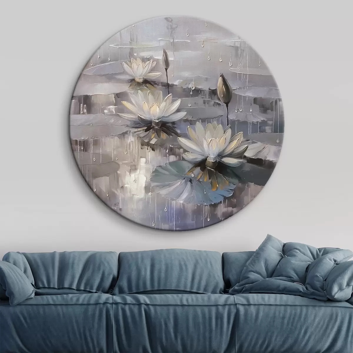 Ronde schilderijen Stijlvolle waterlelies zijn een nieuwe trend r41400