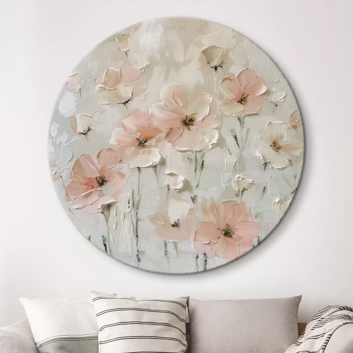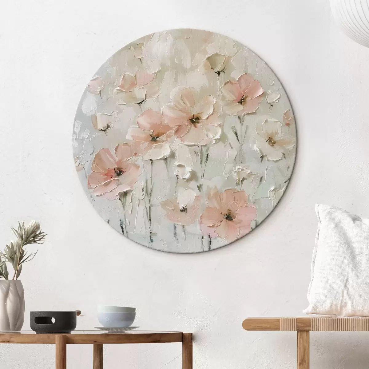 Ronde schilderijen Roze bloemen nieuwe stijl trend r41401