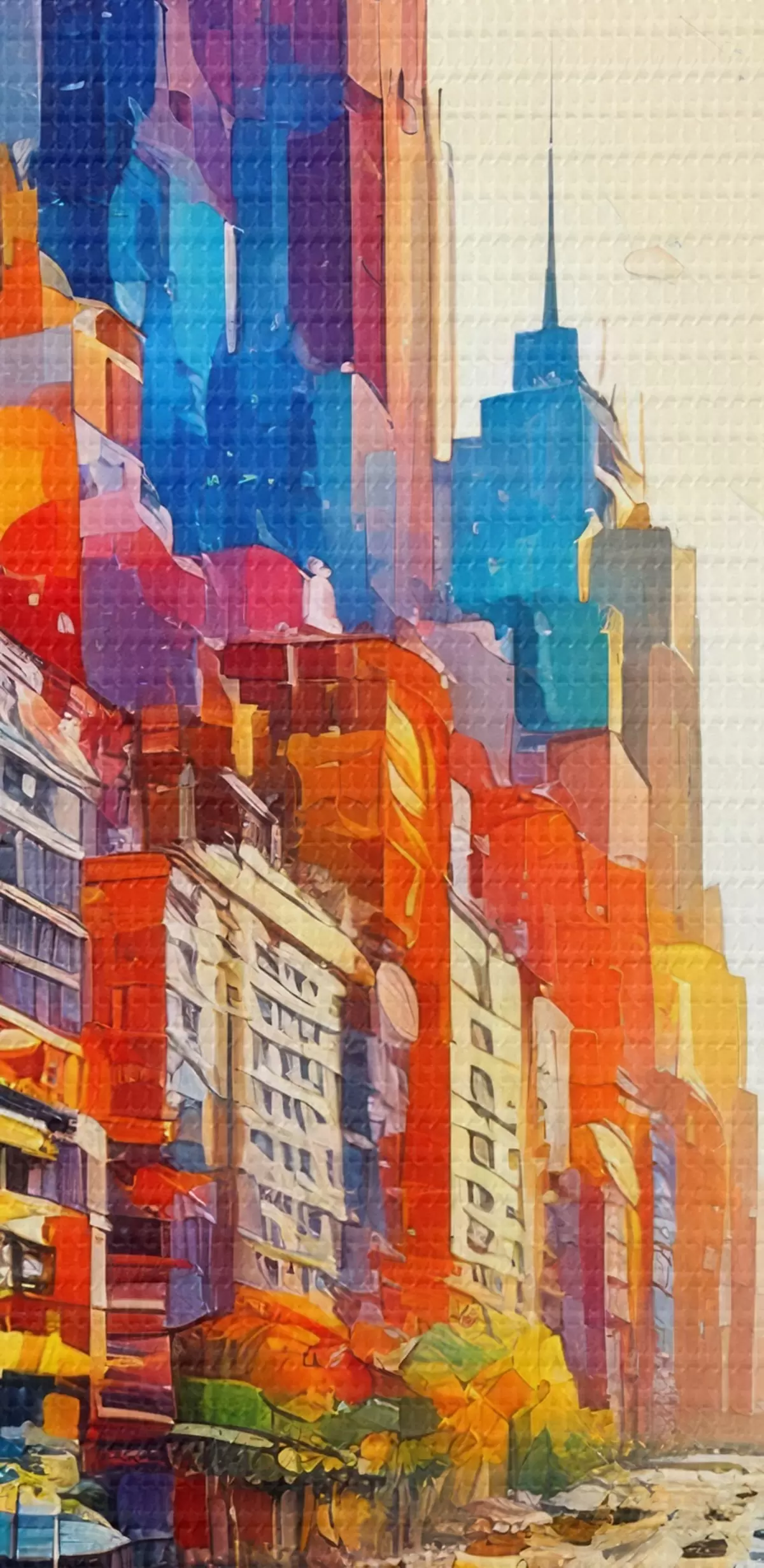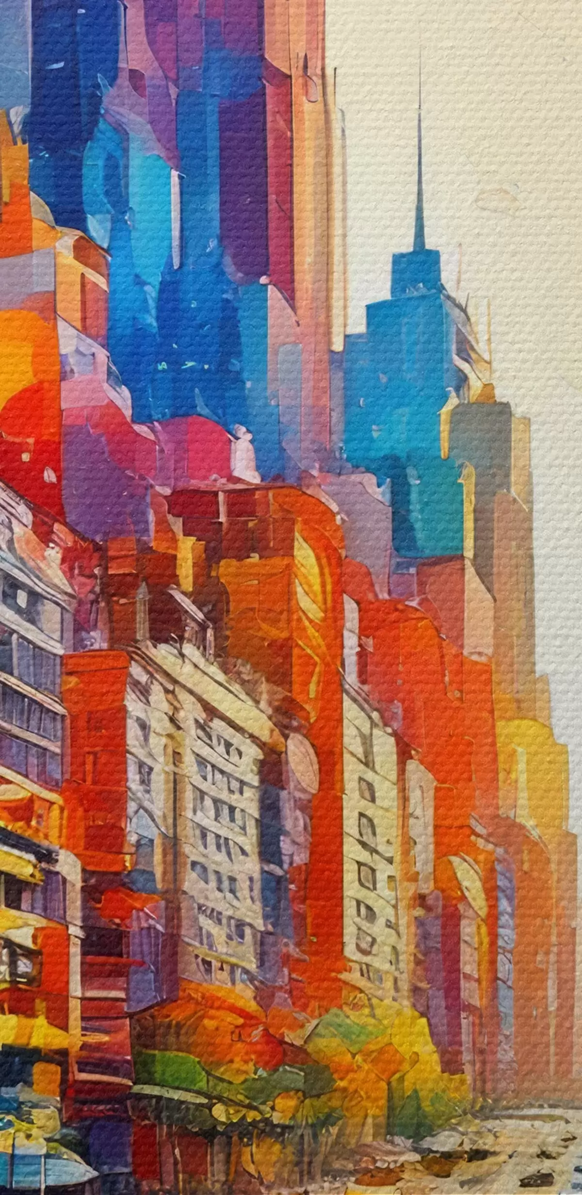 Het schilderij kan direct na ontvangst worden opgehangen. Het schilderij wordt opgespannen op een 2 cm breed houten spieraam.