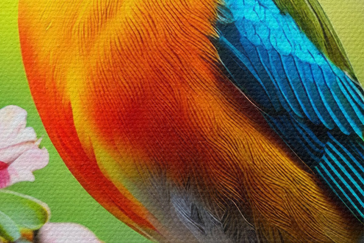 Afbeelding heldere vogel op een tak met bloemen Nr r41412