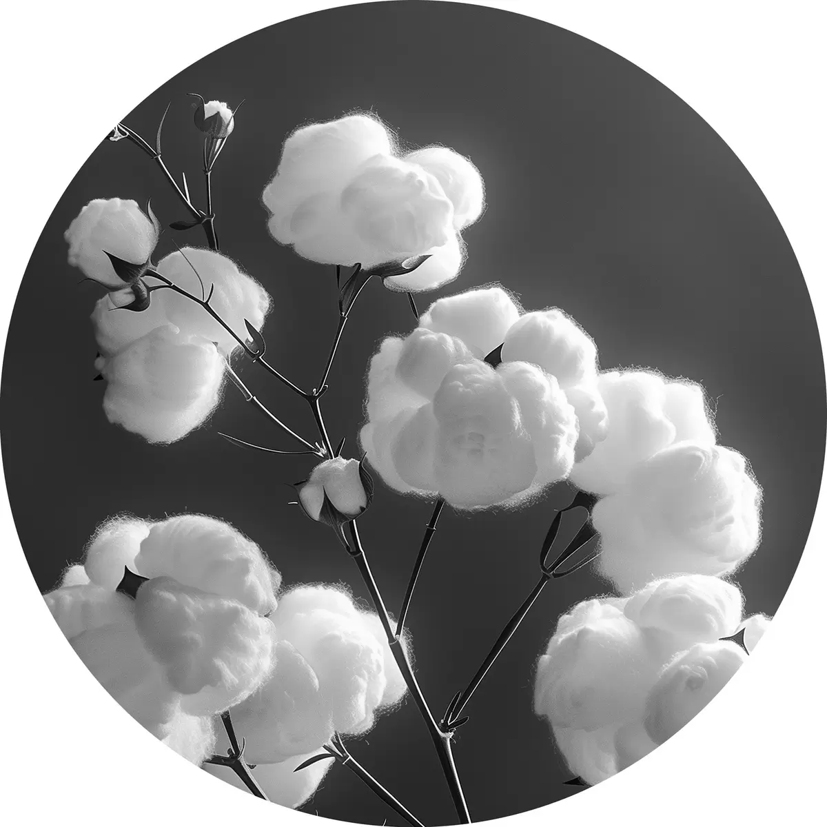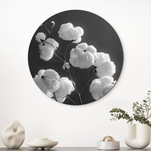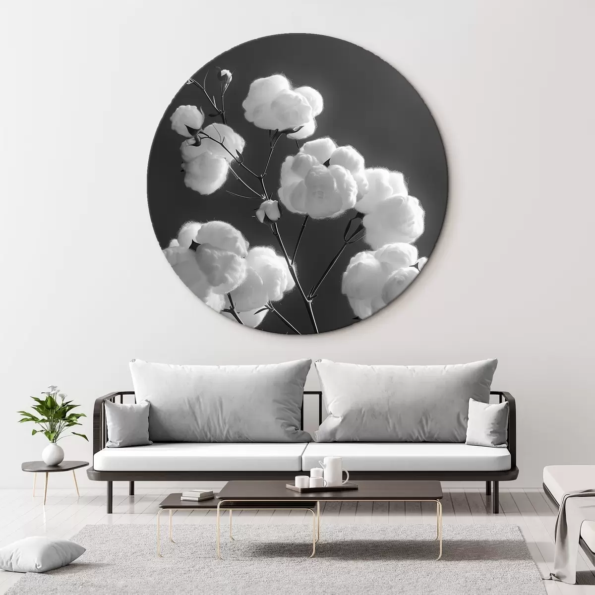 Ronde schilderijen Katoentakken, zwart-wit versie r41429