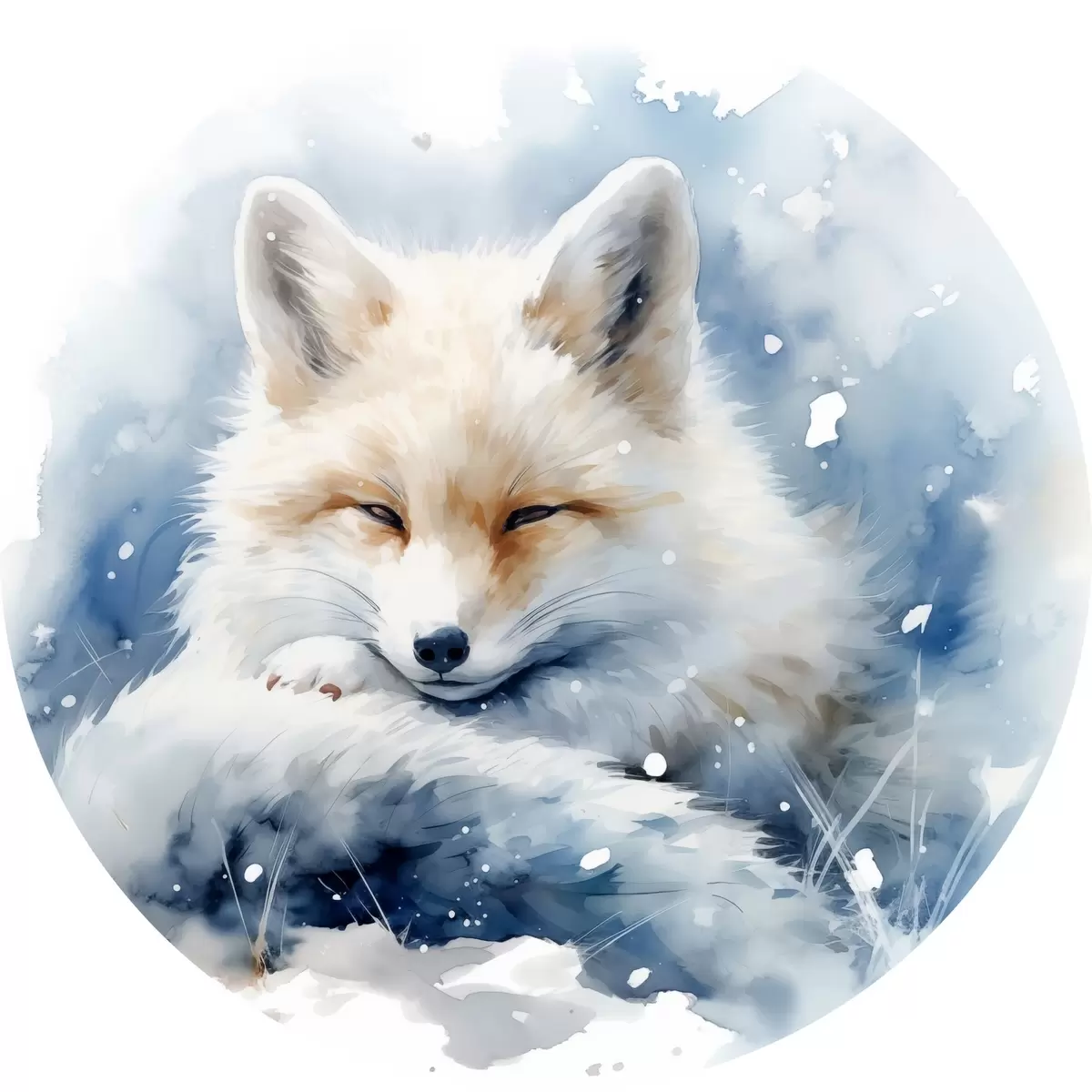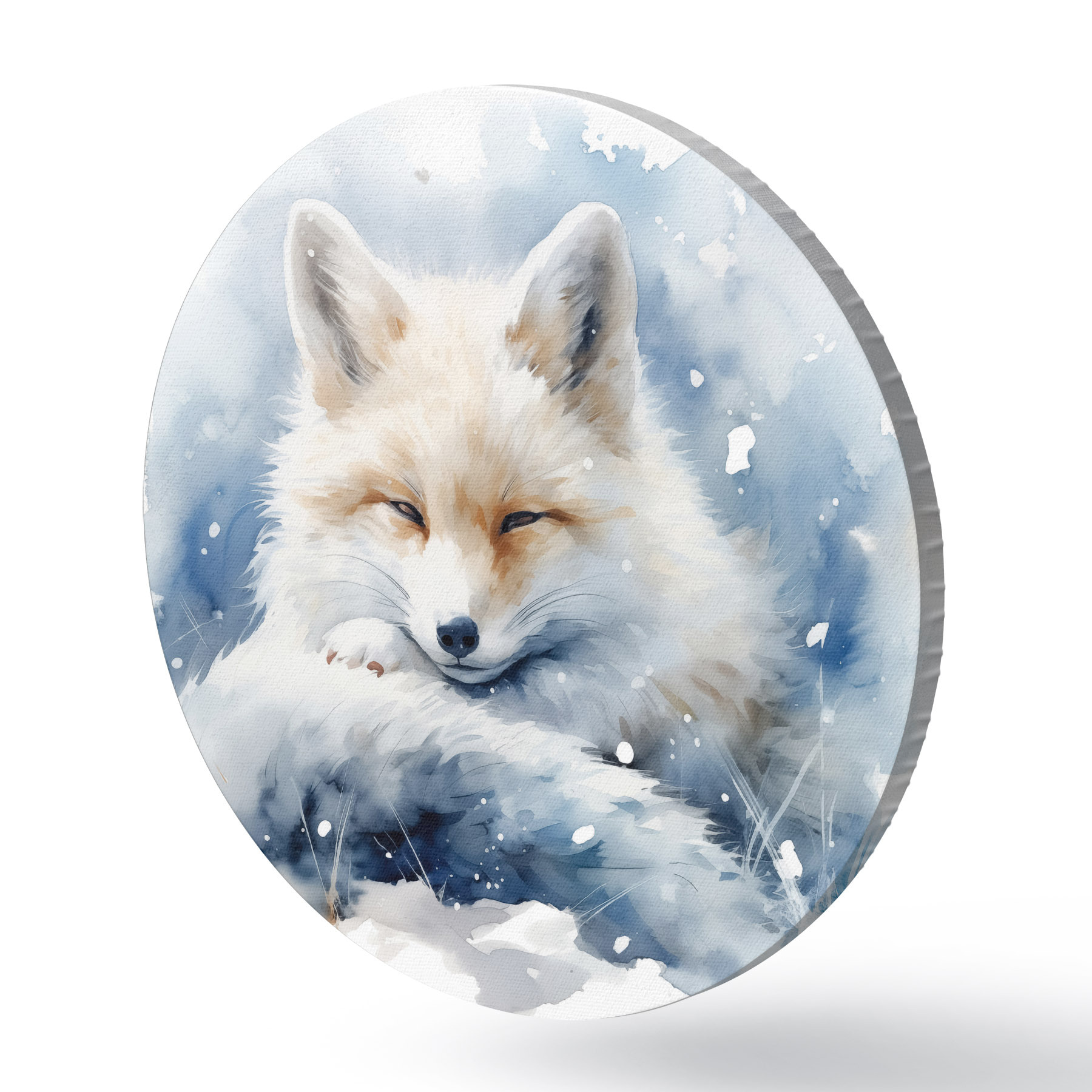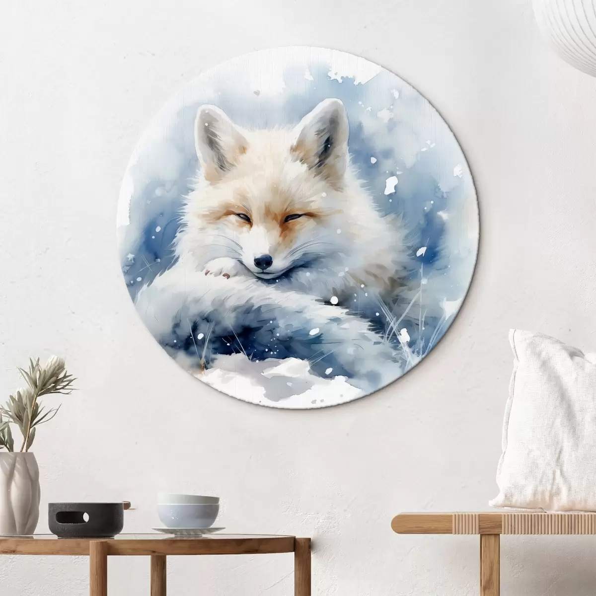 Ronde schilderijen Vos in de sneeuw imitatie aquarel illustratie r41436