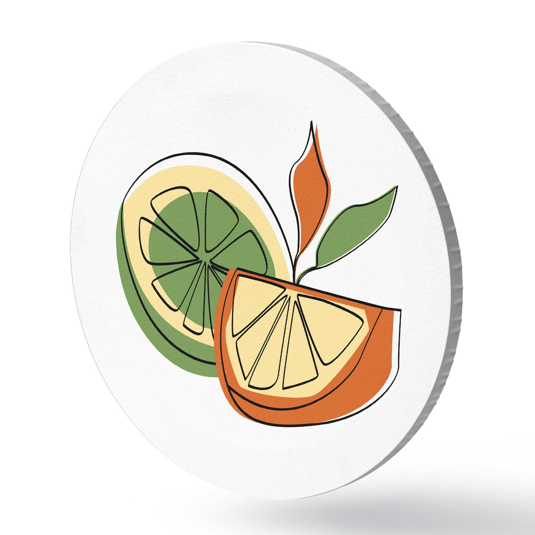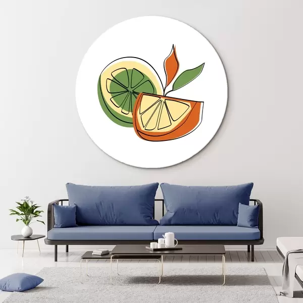 Ronde schilderijen Citrus lineaire tekening, abstractie r41468