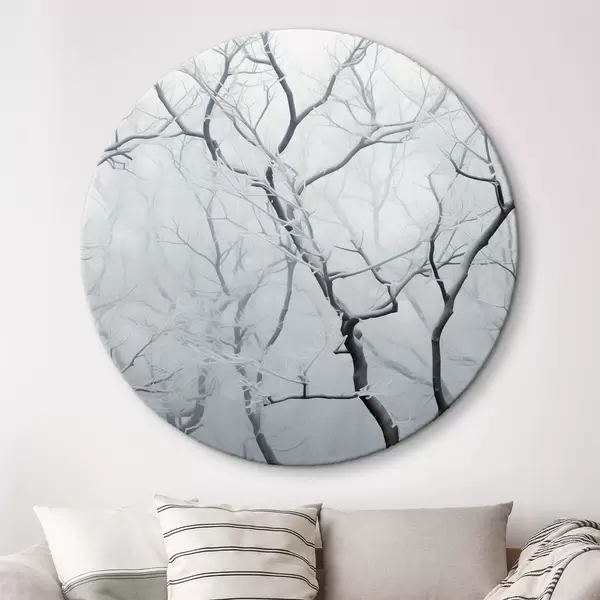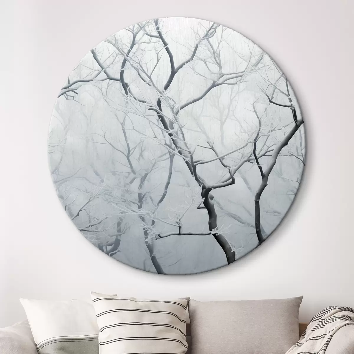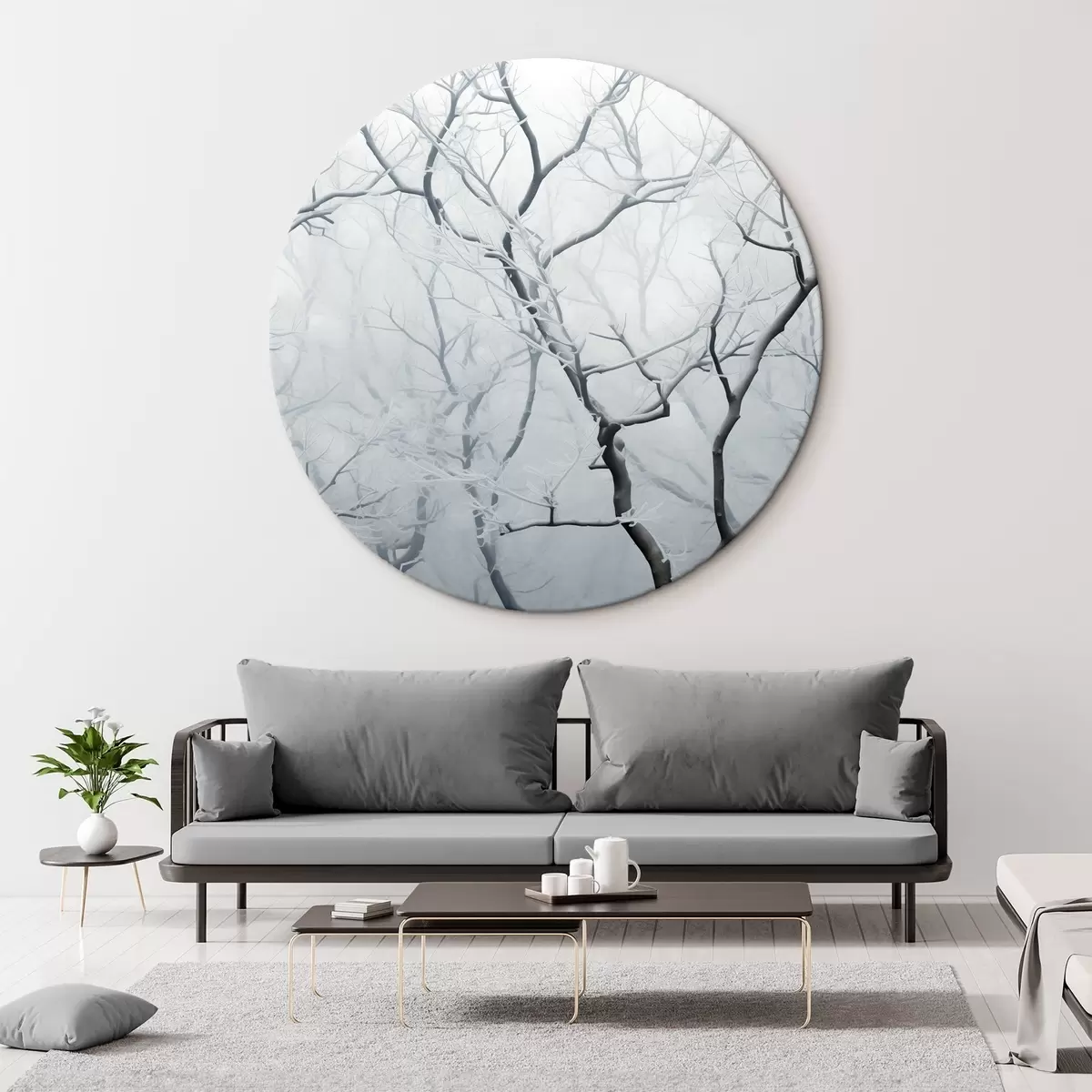 Ronde schilderijen Boomtakken in de vorst, minimalisme r41469