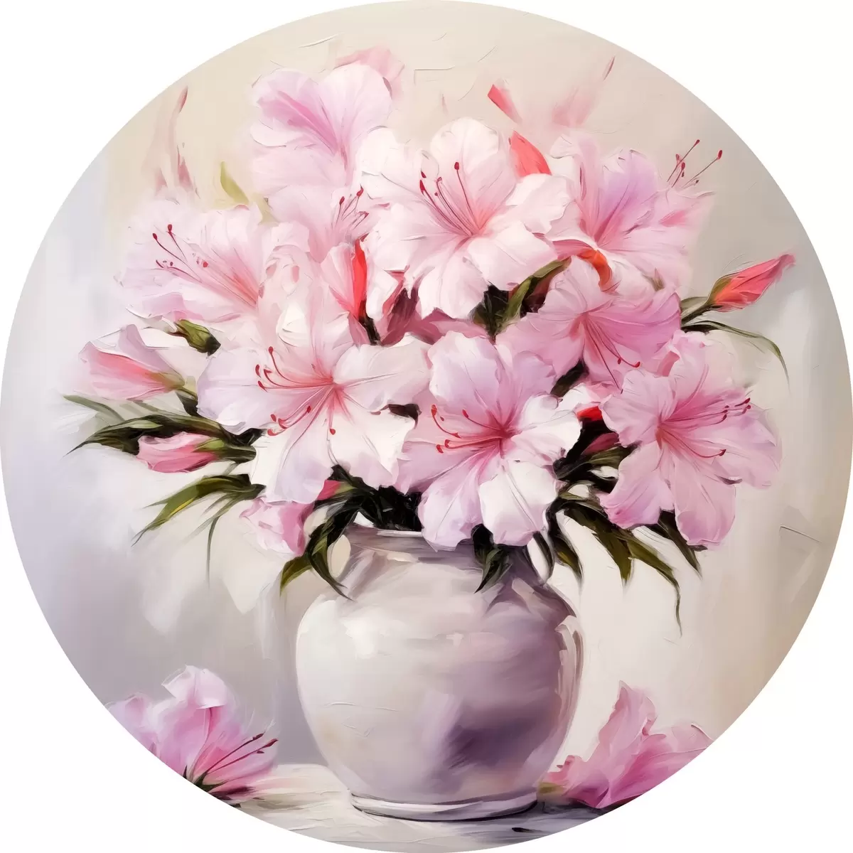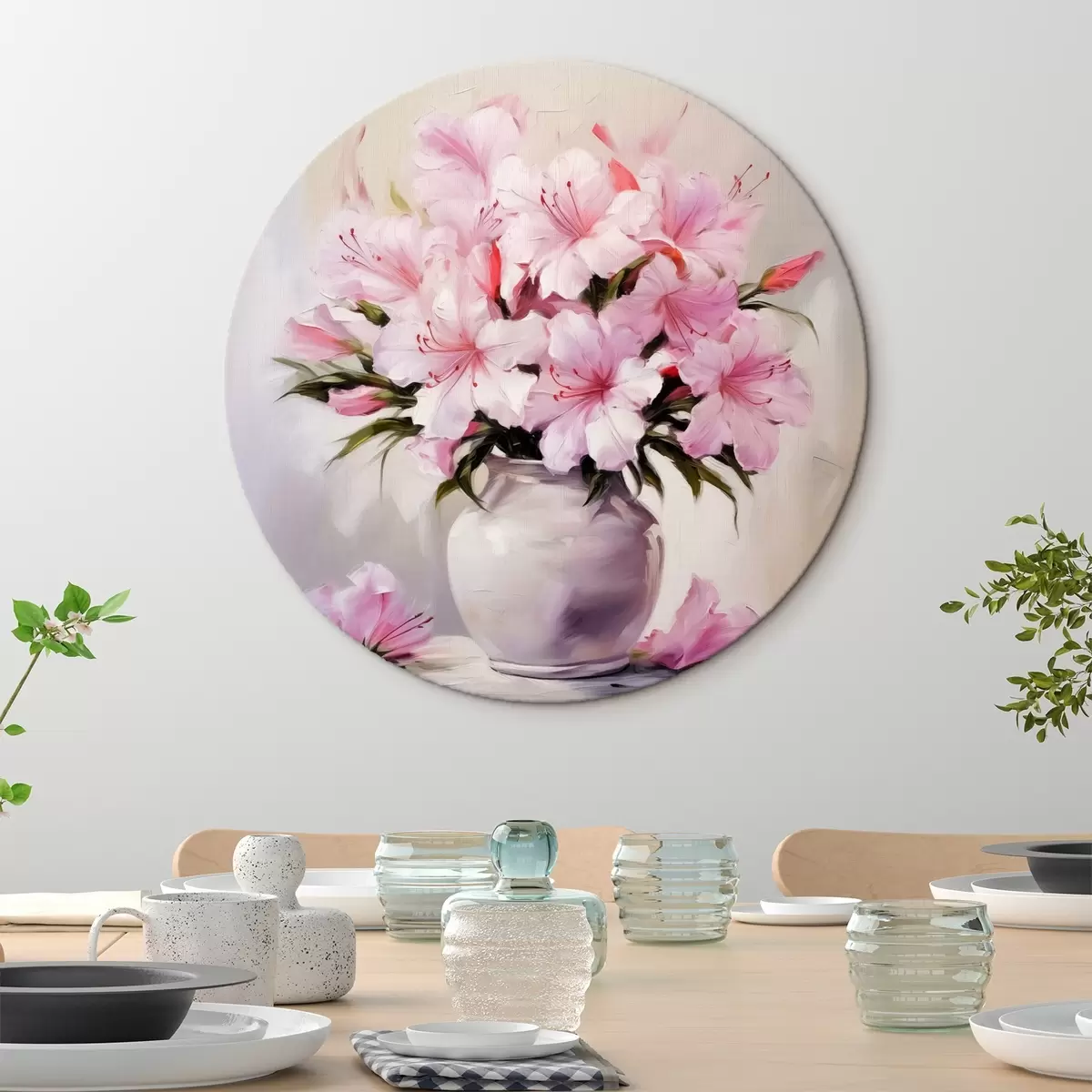 Ronde schilderijen Roze hibiscus in een pot r41472