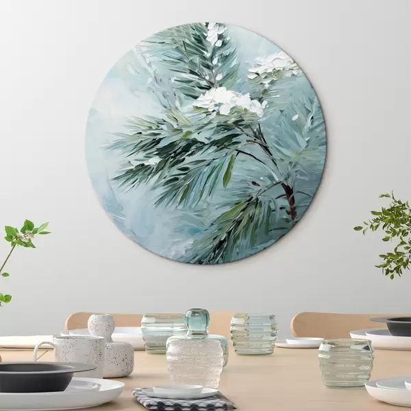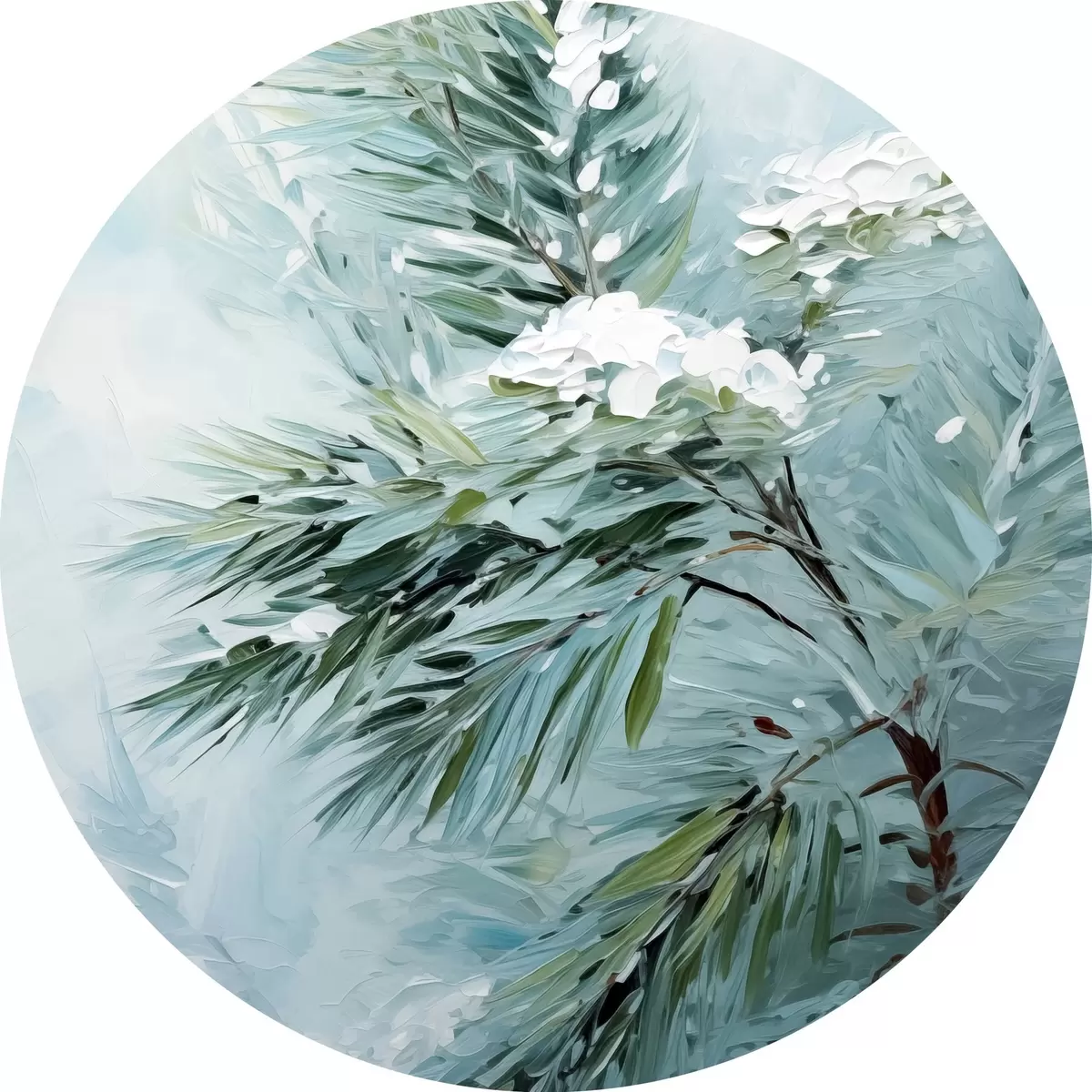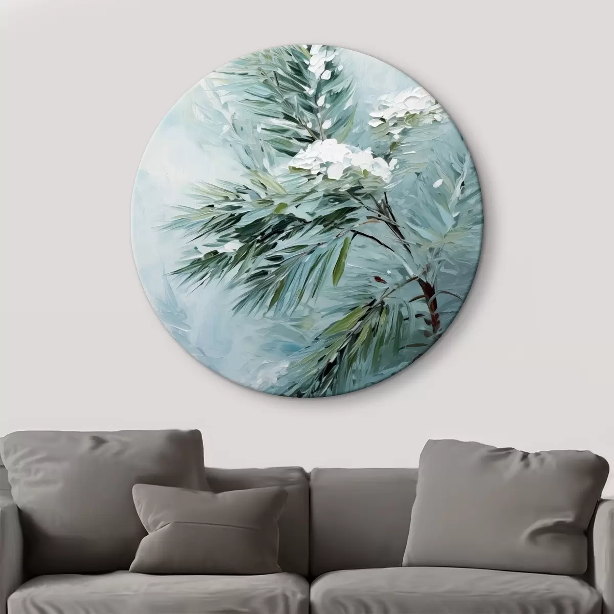 Ronde schilderijen Sparrentak in een besneeuwde imitatie van het schilderij r41474