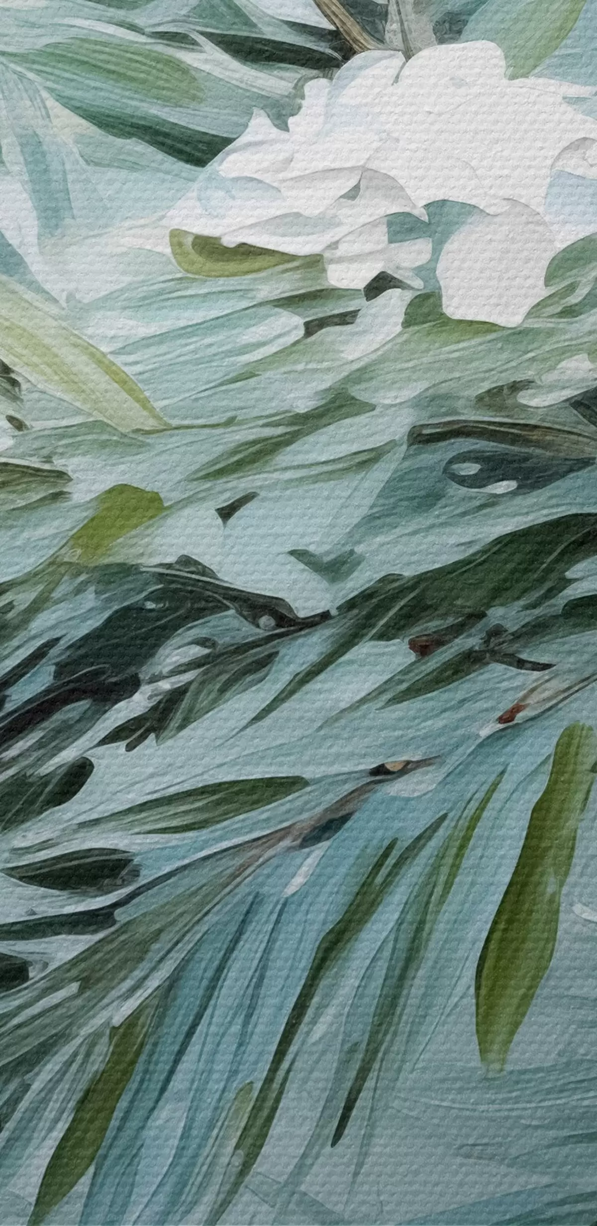 Het schilderij kan direct na ontvangst worden opgehangen. Het schilderij wordt opgespannen op een 2 cm breed houten spieraam.