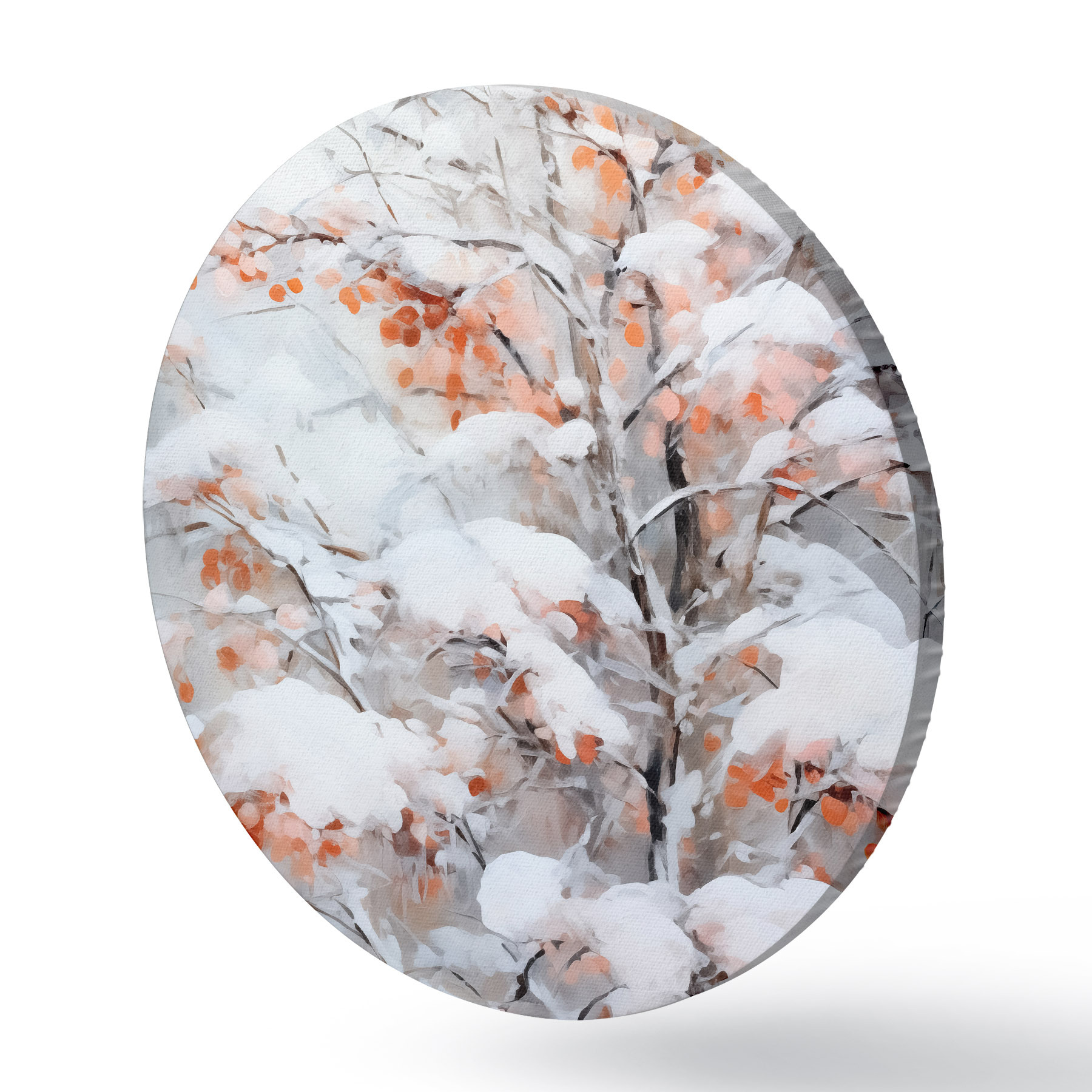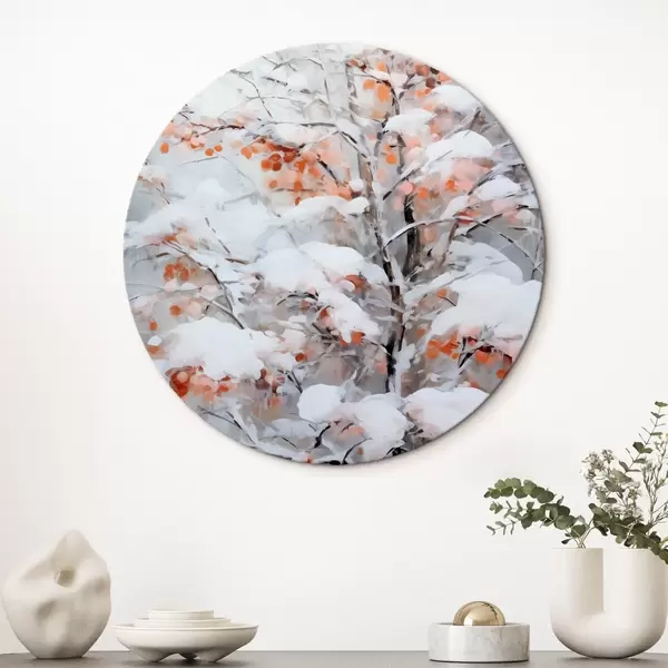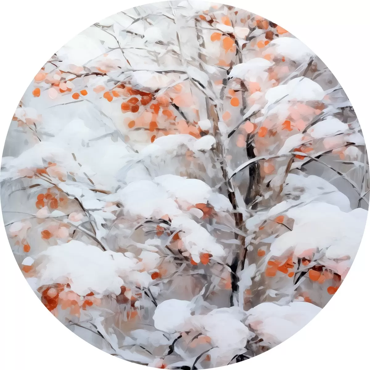 Ronde schilderijen Boom met bessen onder de sneeuw r41477
