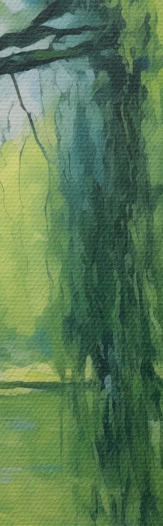 Het schilderij kan direct na ontvangst worden opgehangen. Het schilderij wordt opgespannen op een 2 cm breed houten spieraam.