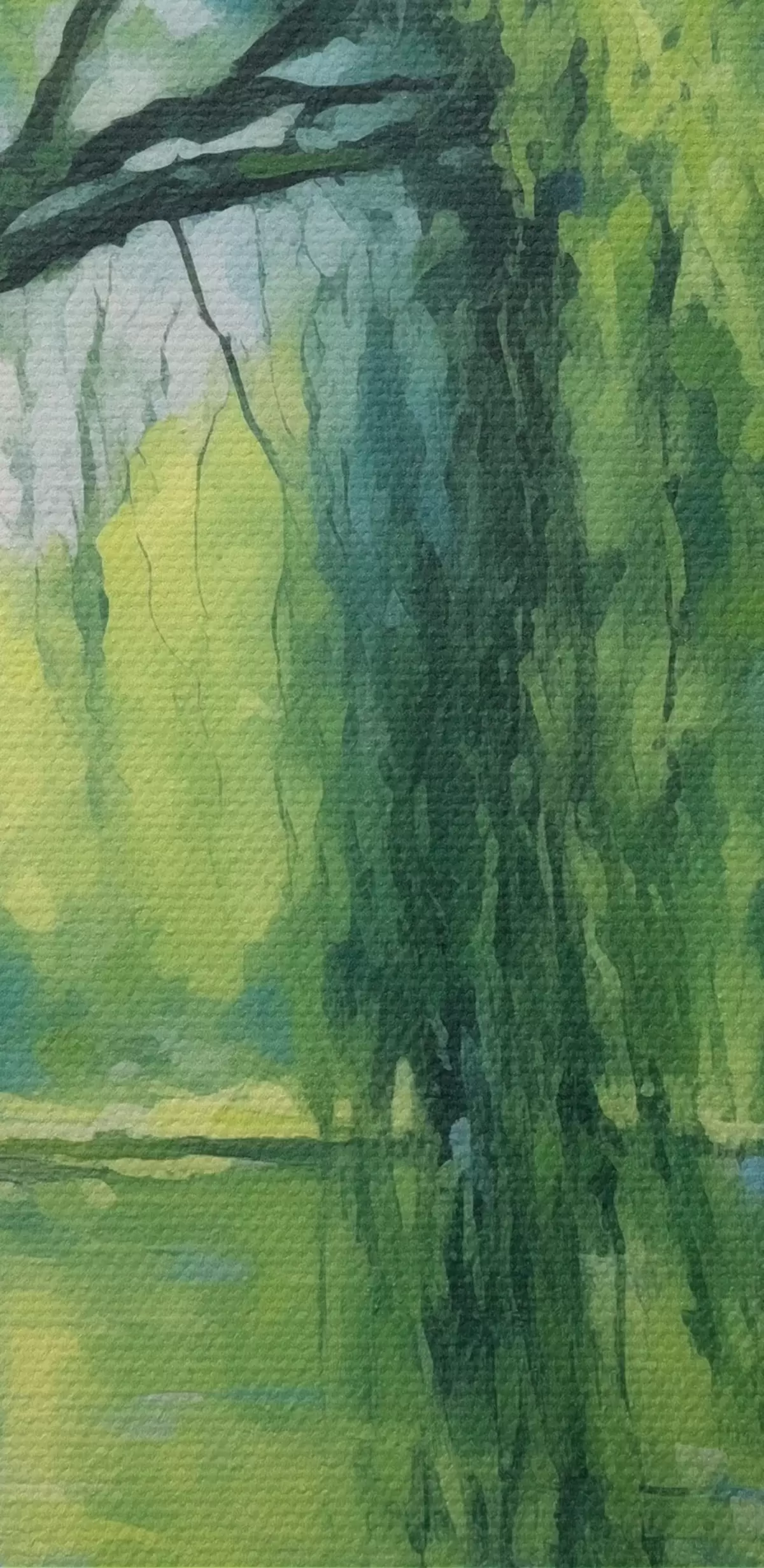 Het schilderij kan direct na ontvangst worden opgehangen. Het schilderij wordt opgespannen op een 2 cm breed houten spieraam.