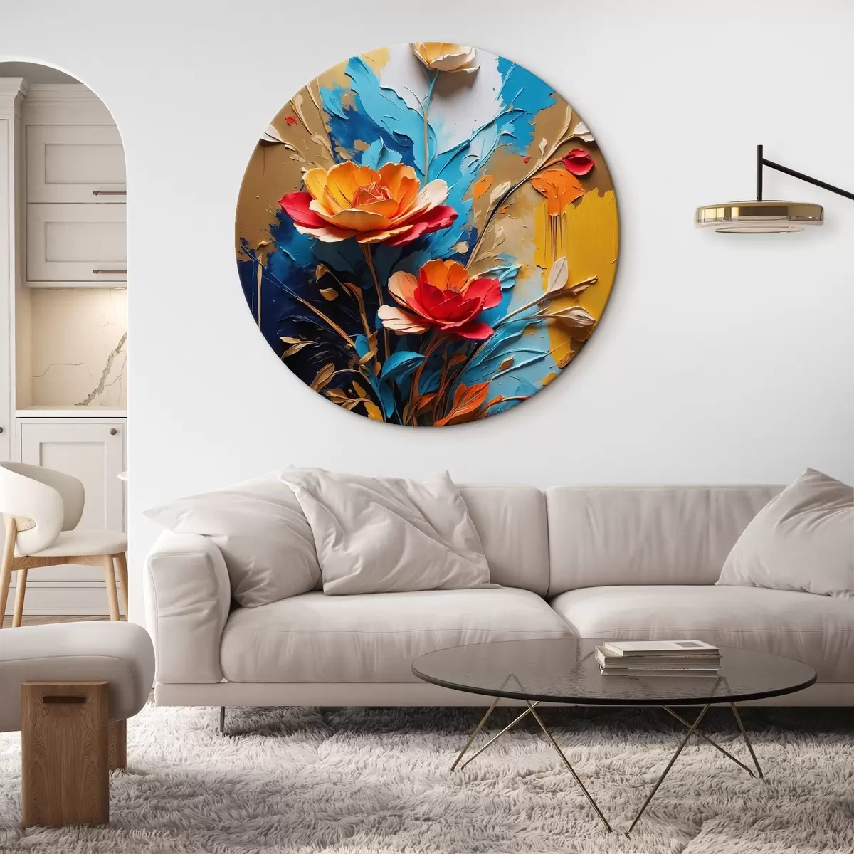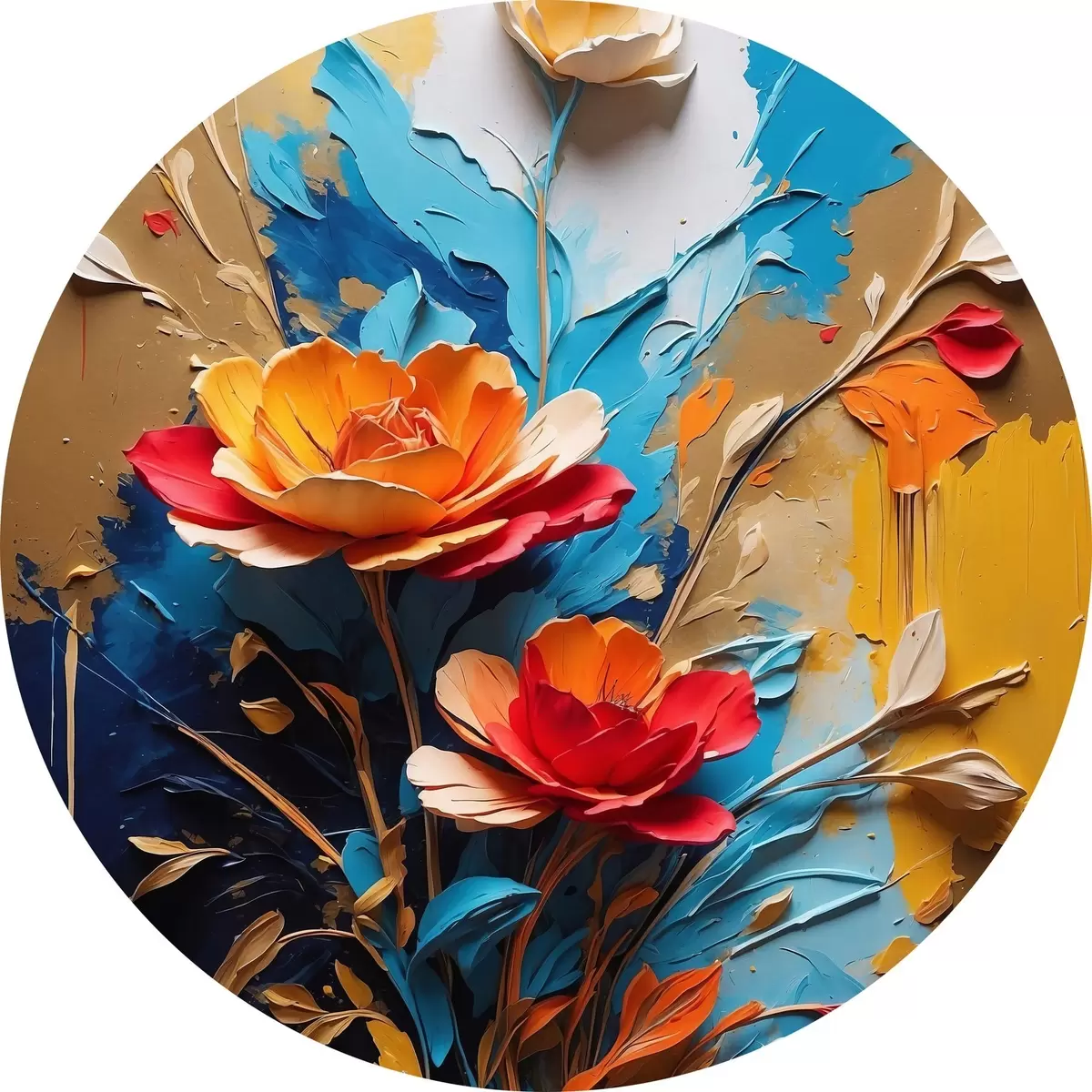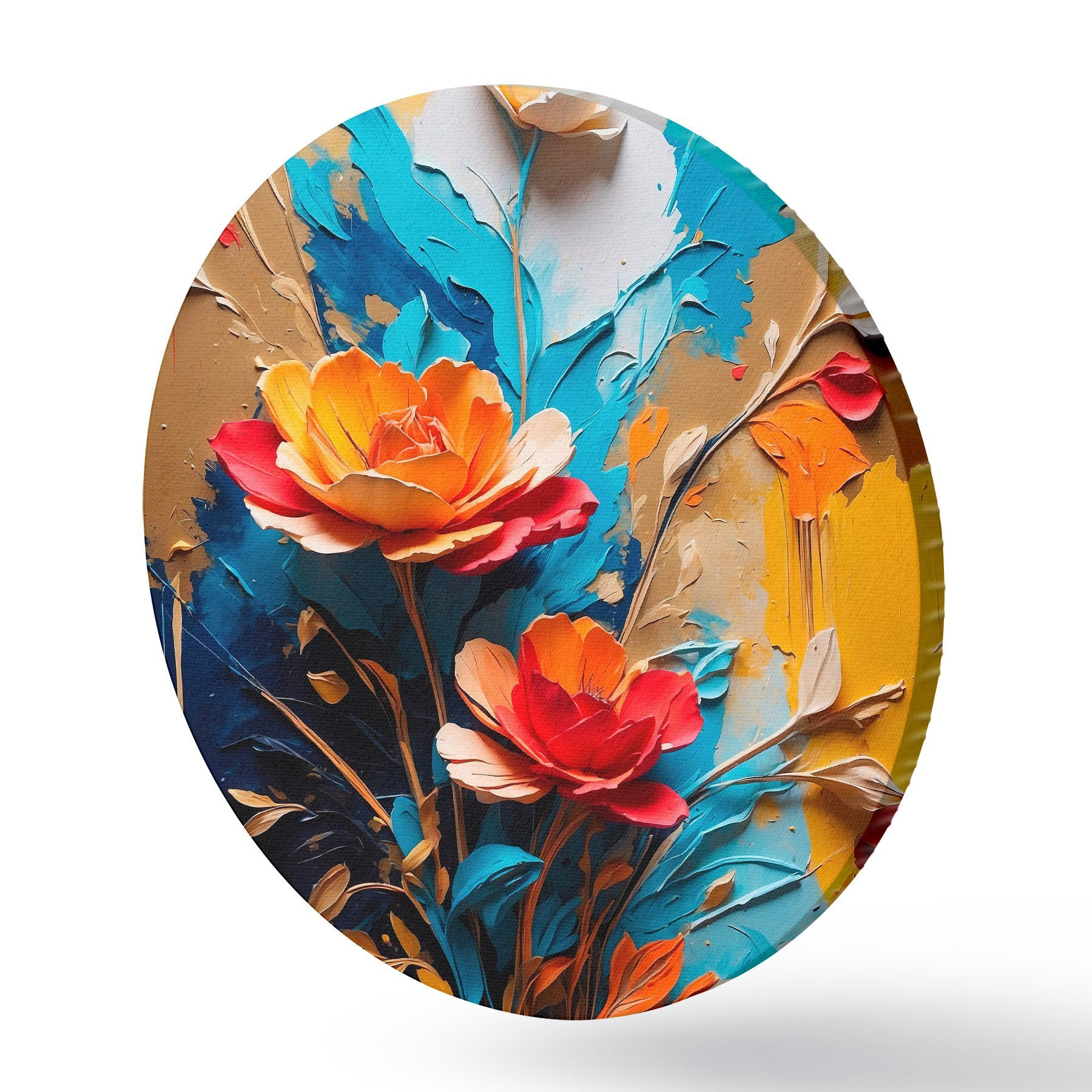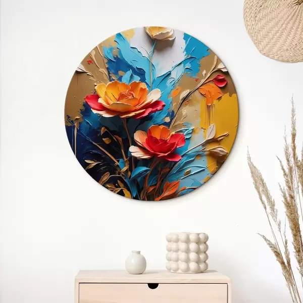 Ronde schilderijen Bloemen op abstracte veelkleurige achtergrond in olieverfstijl r41769