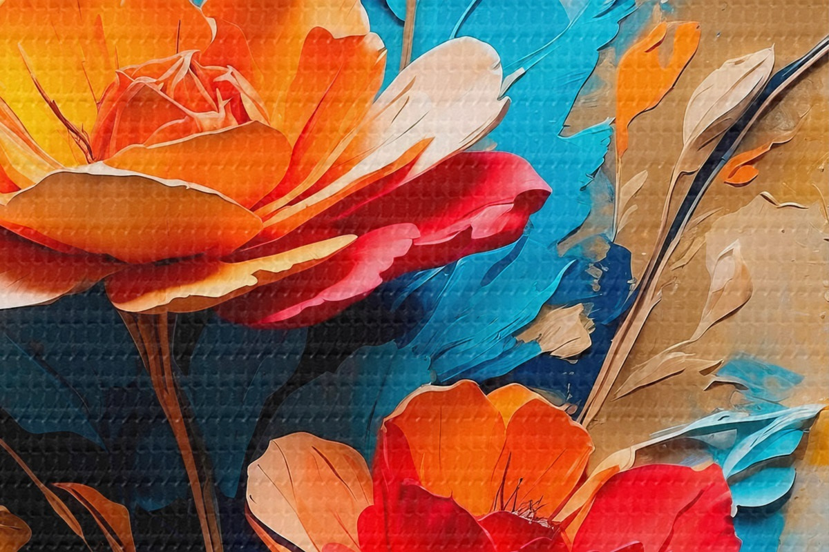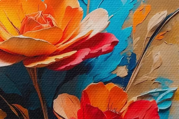 Afbeelding Bloemen op abstracte veelkleurige achtergrond in olieverfstijl Nr r41769