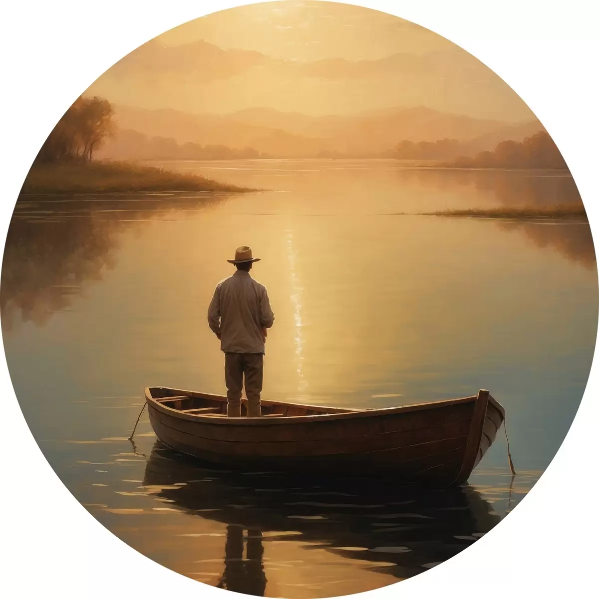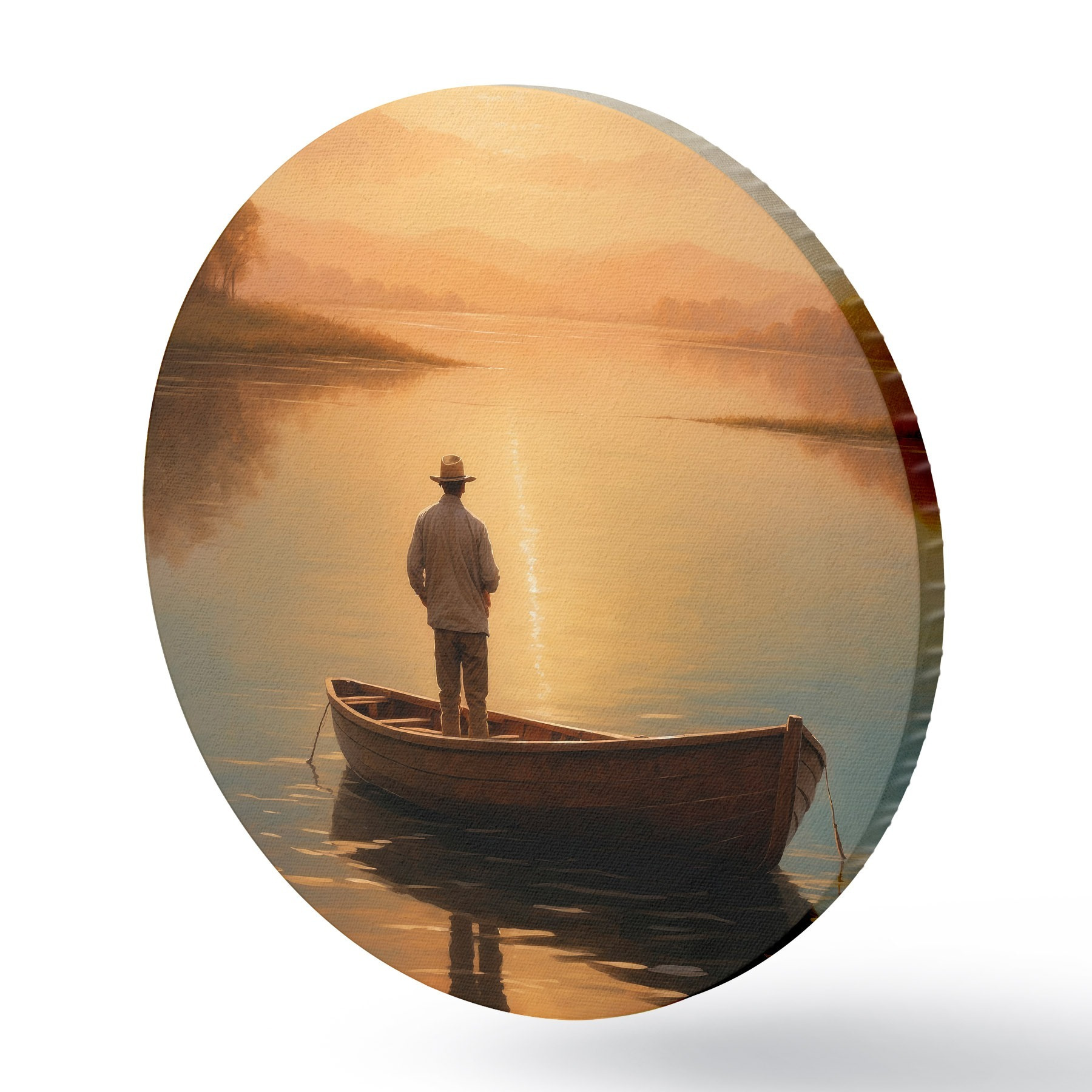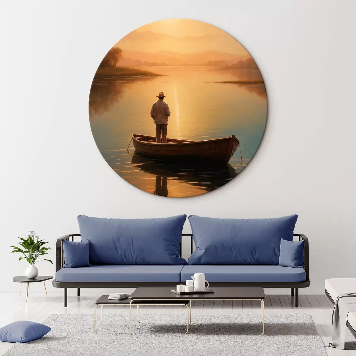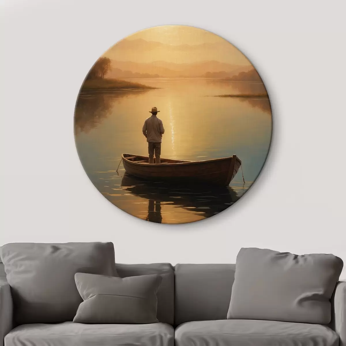 Ronde schilderijen Man in een boot in het midden van een meer r41770