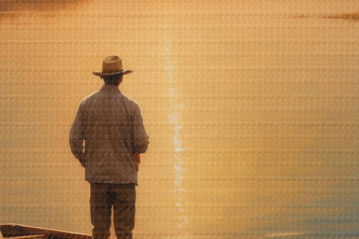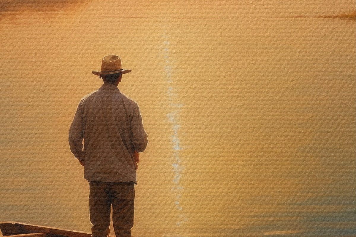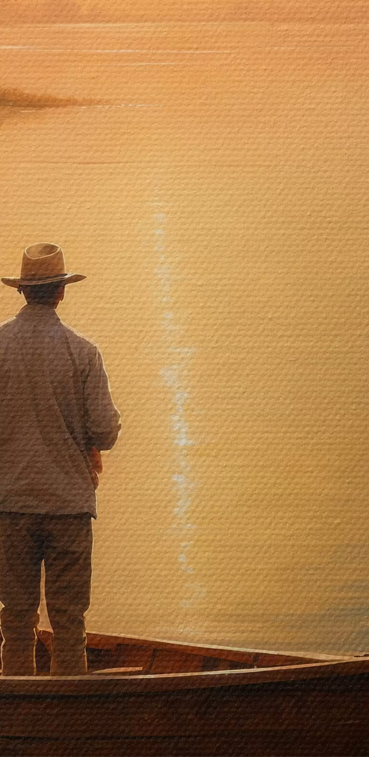 Afbeelding Man in een boot in het midden van een meer Nr r41770
