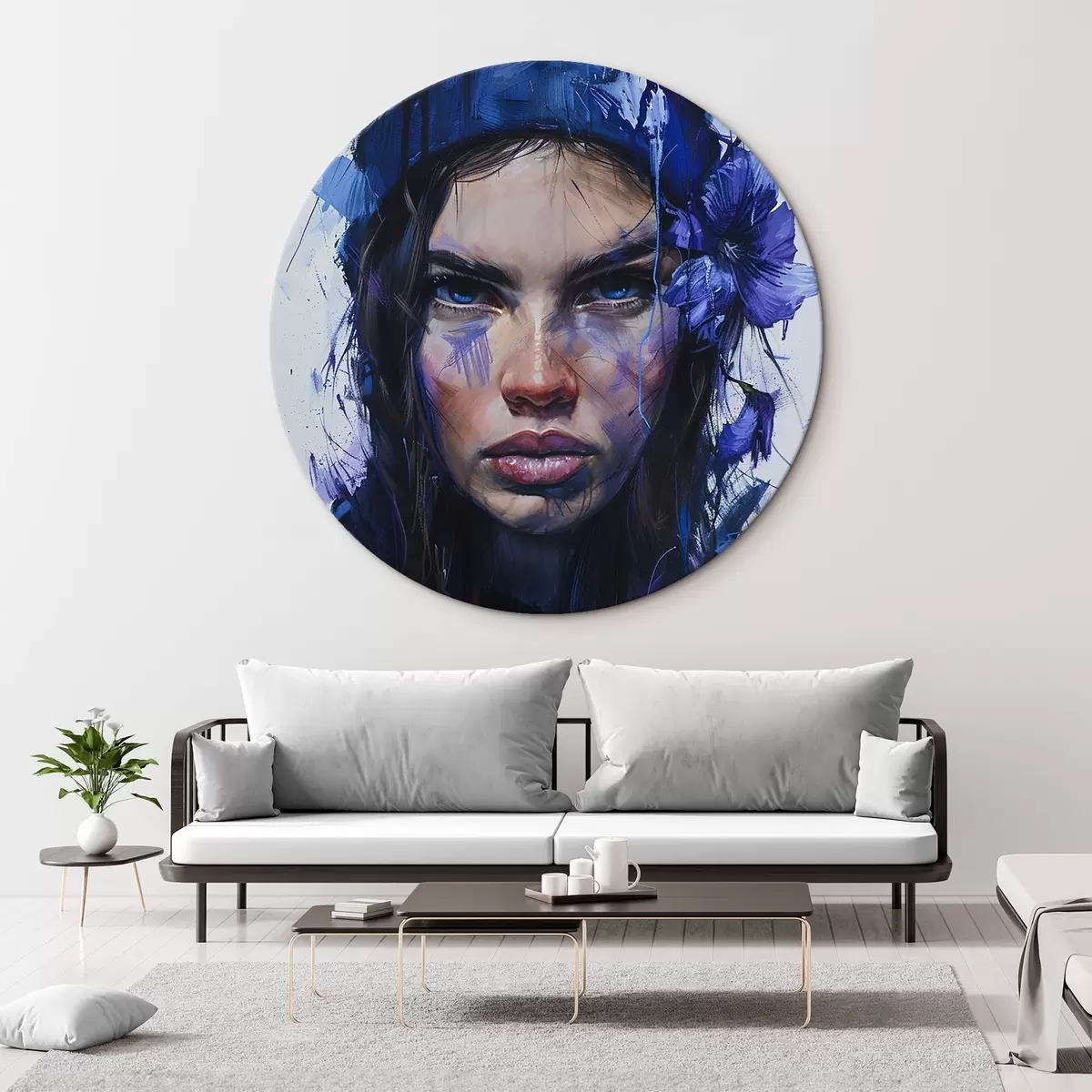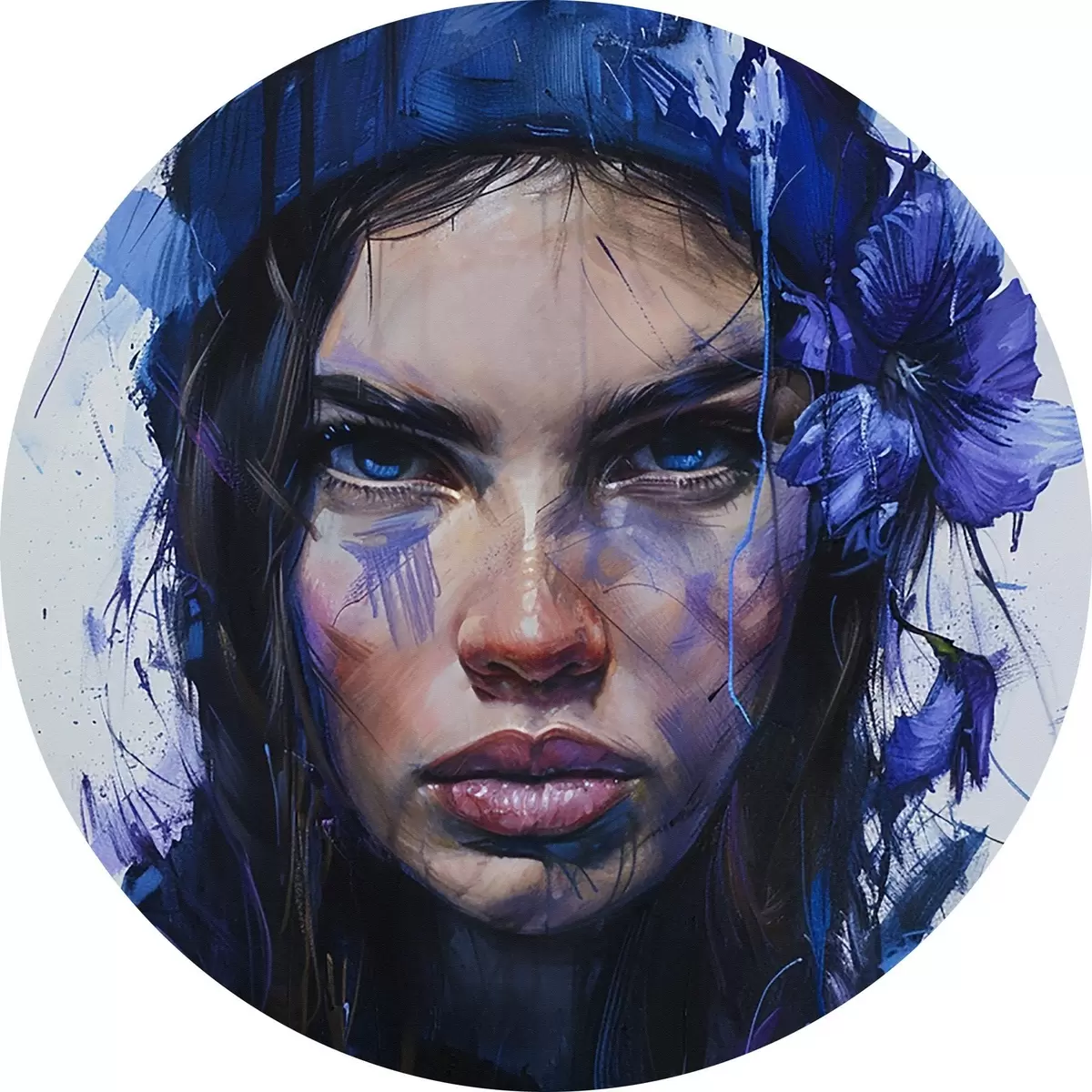 Ronde schilderijen Portret van een meisje in aquarelstijl r42086