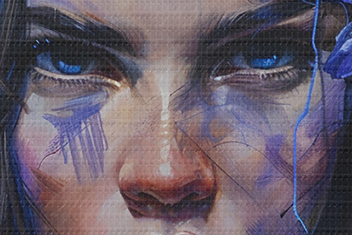 De fijne weving van draden op dit doek lijkt op het oppervlak van professionele schildersdoeken.