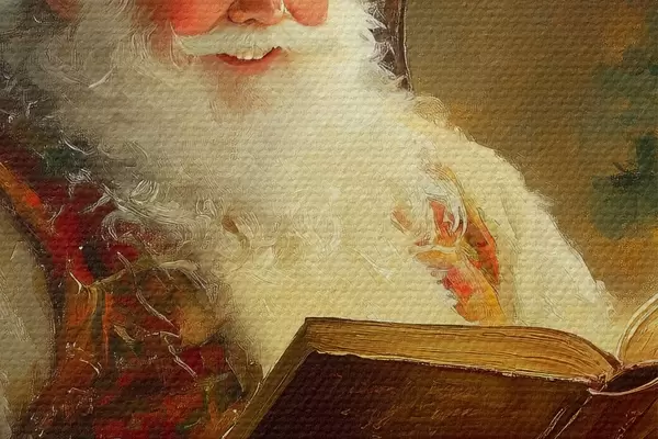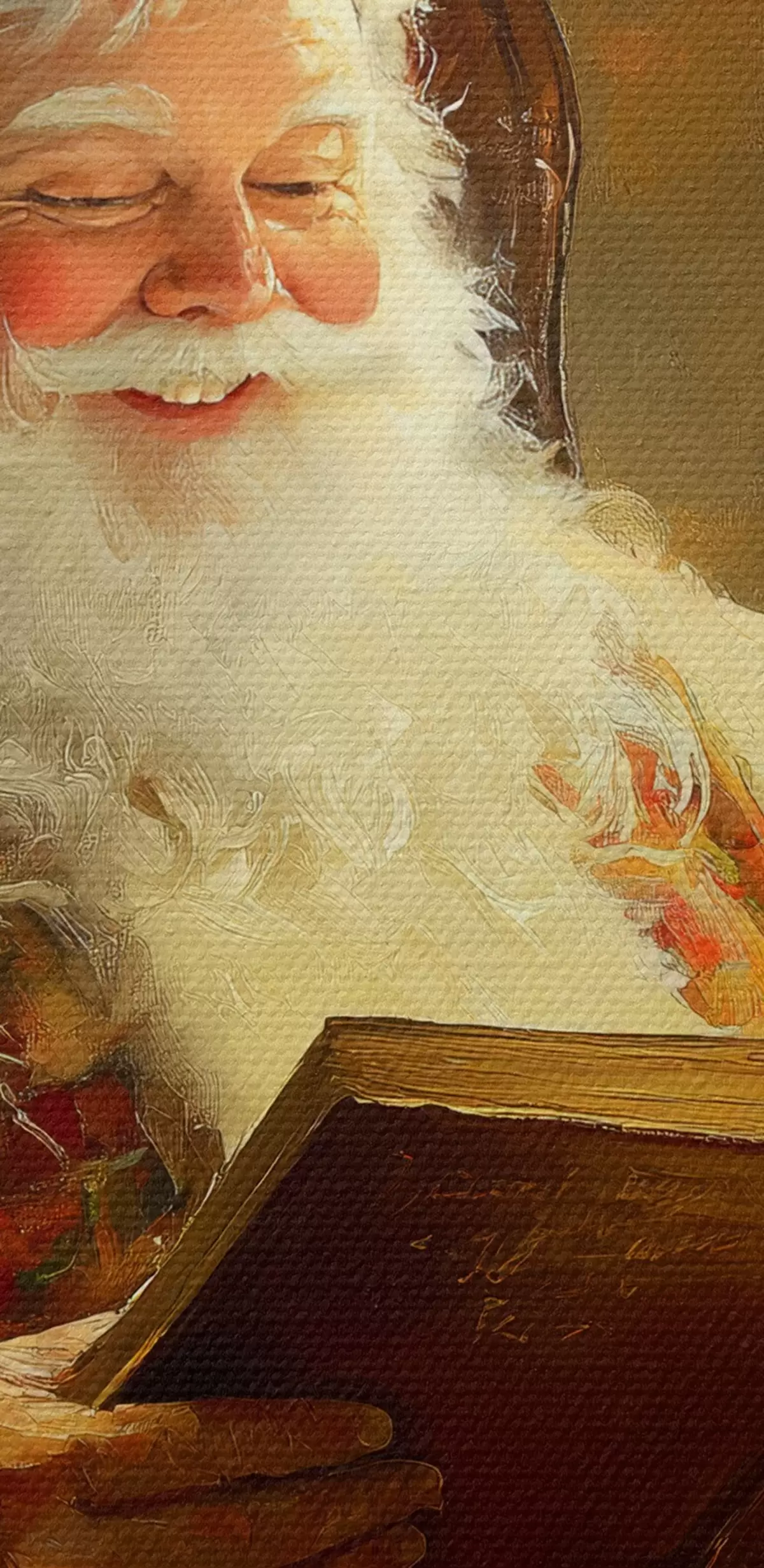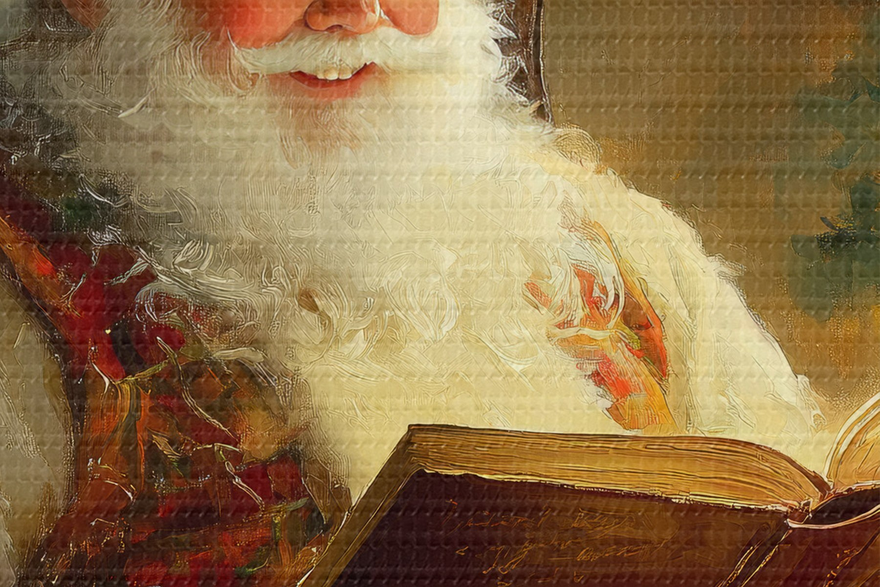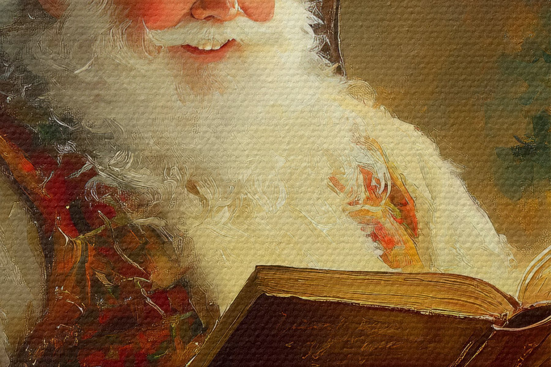 Afbeelding De Kerstman leest een boek bij de kerstboom Nr r42100