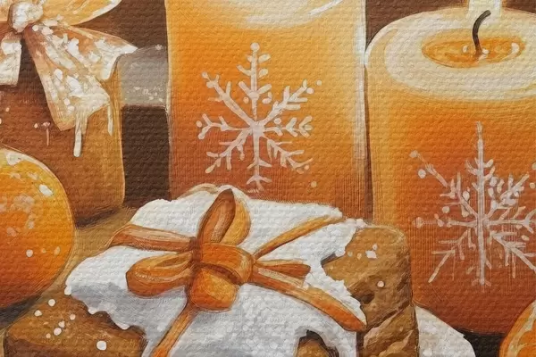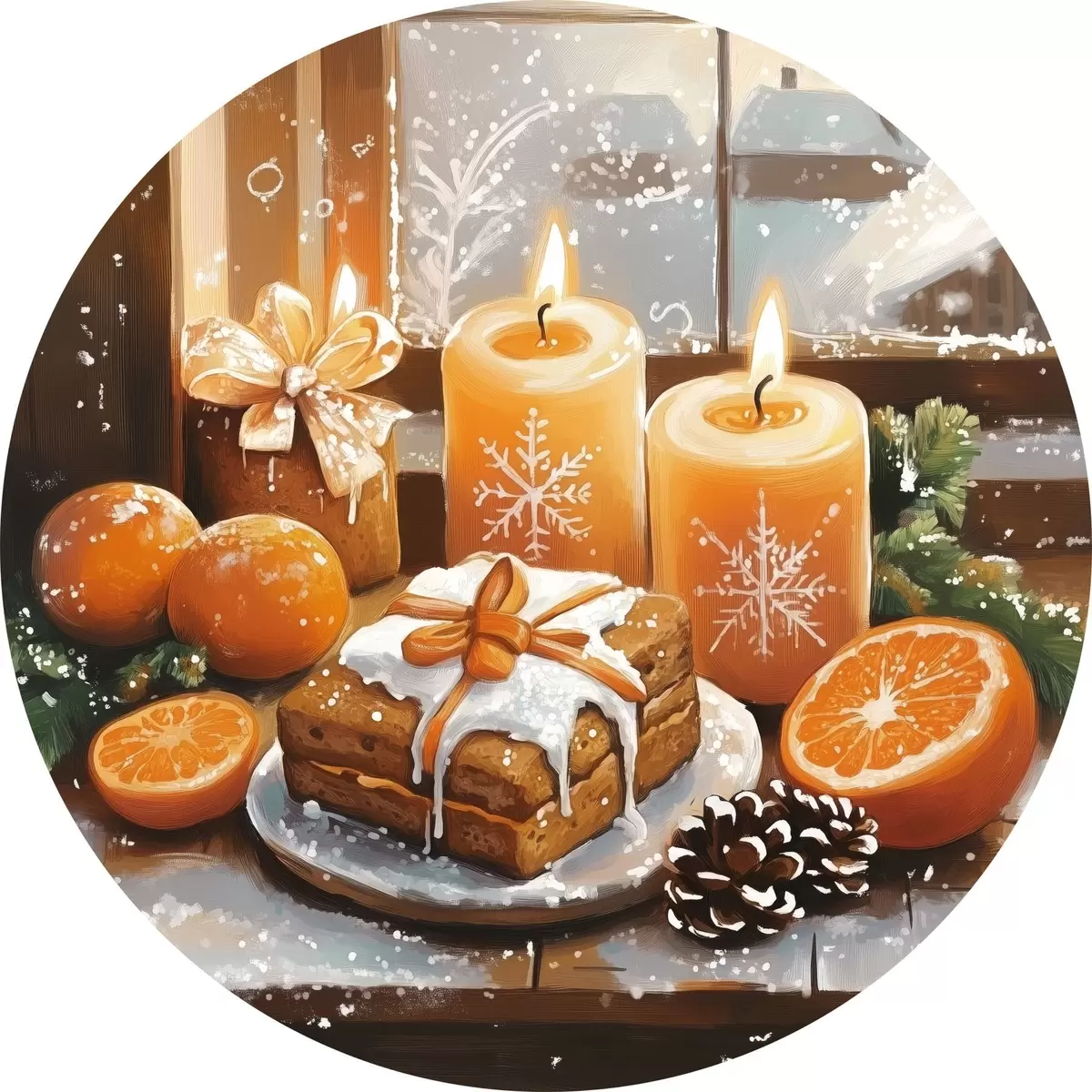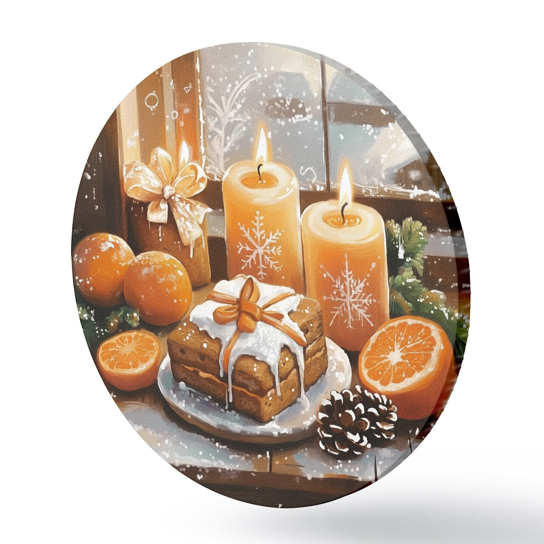 Ronde schilderijen Kerstcake, mandarijnen, kaarsen r42101