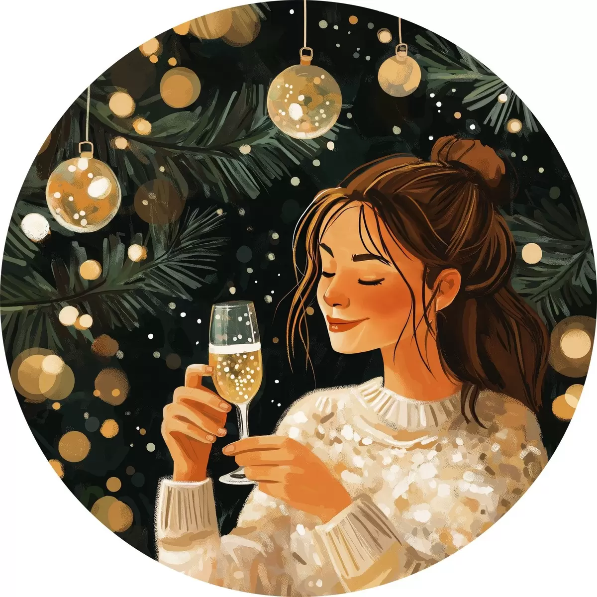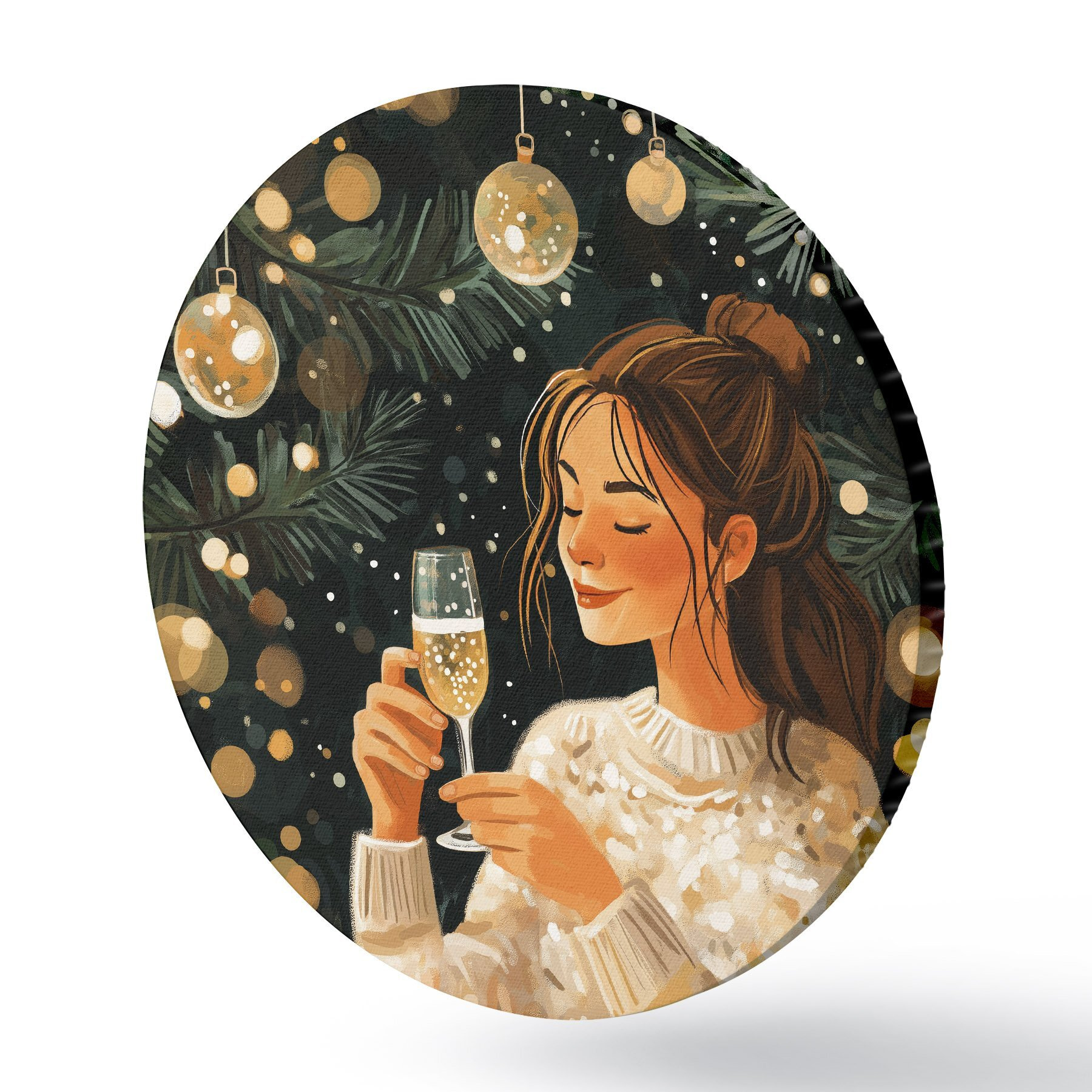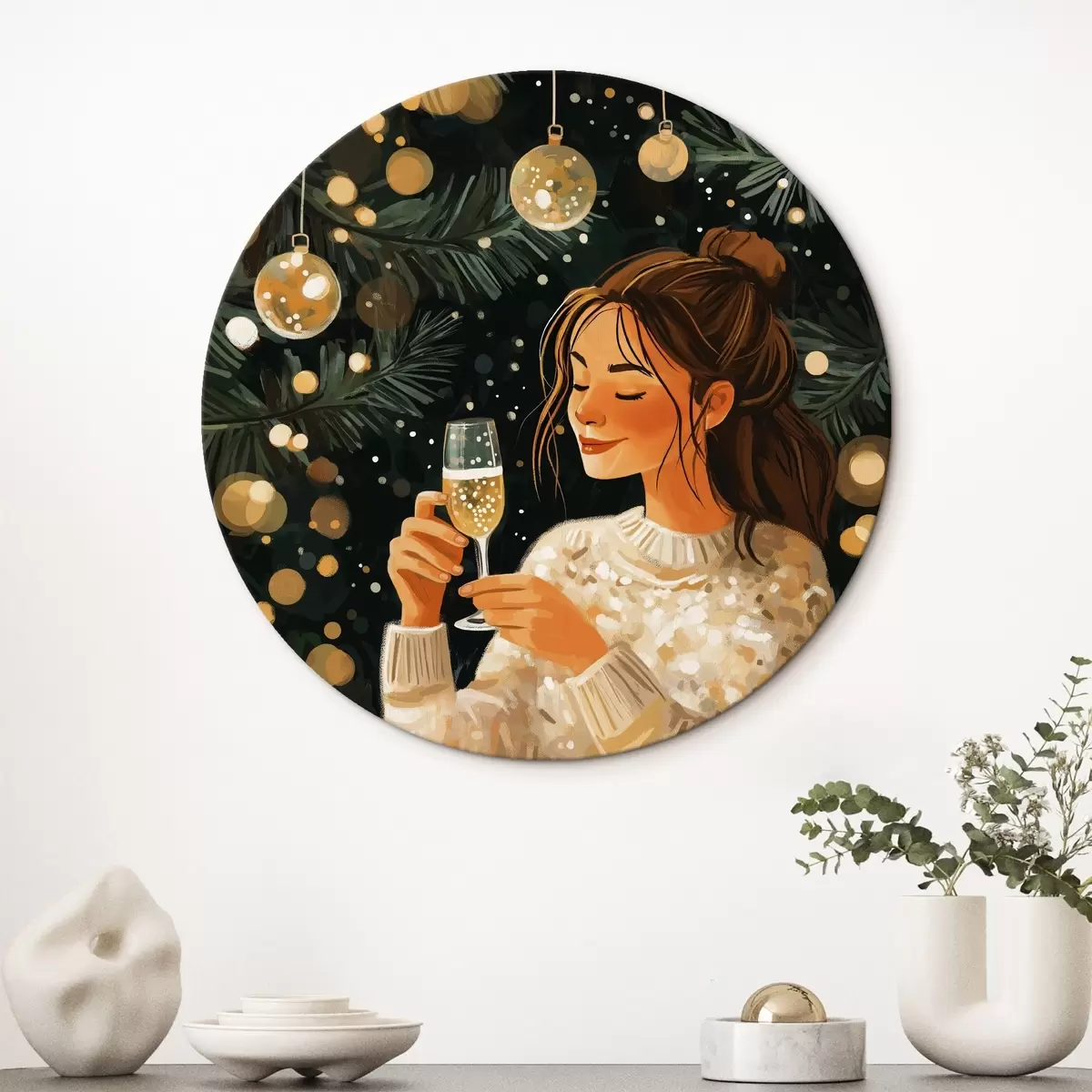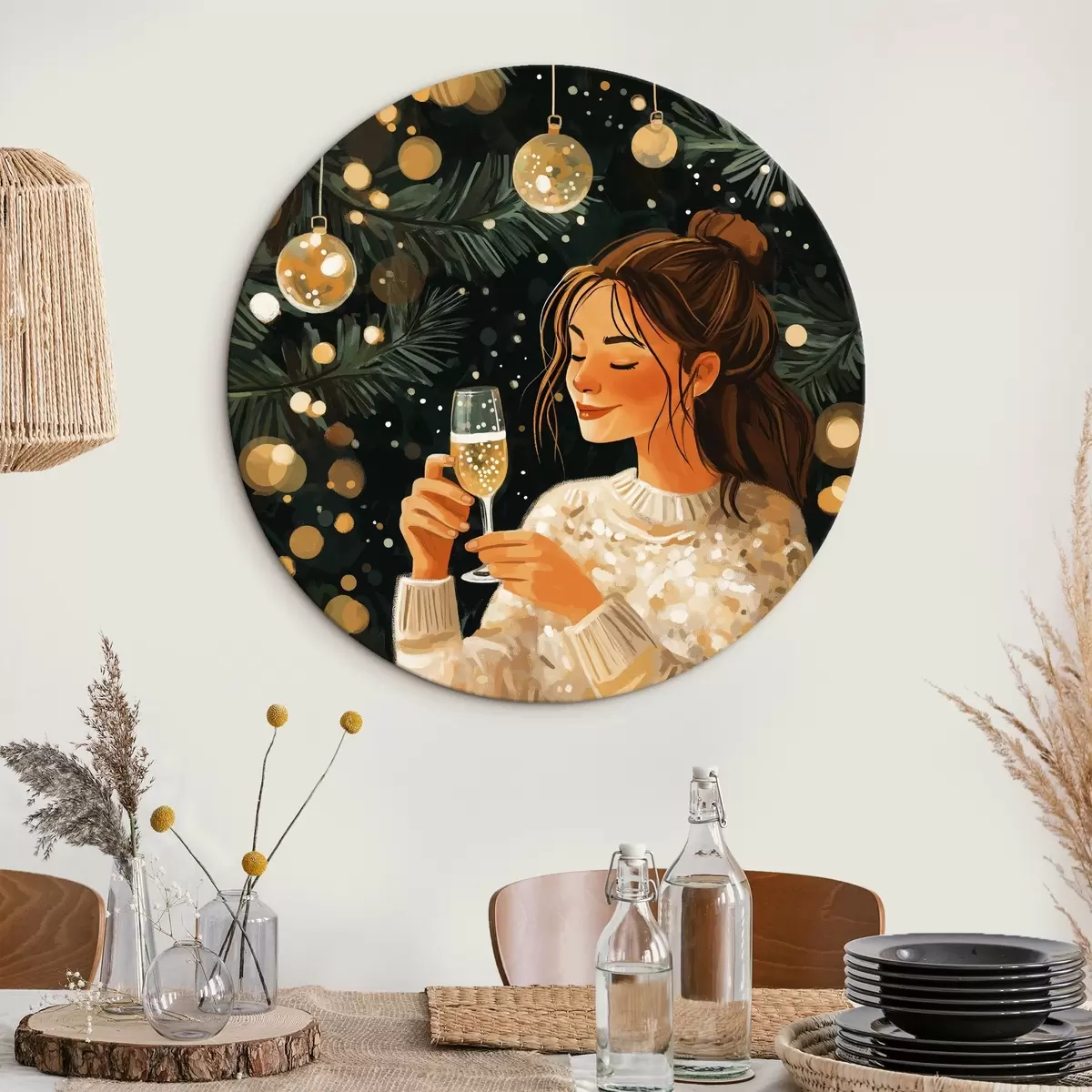Ronde schilderijen Een meisje met een glas champagne op oudejaarsavond r42102