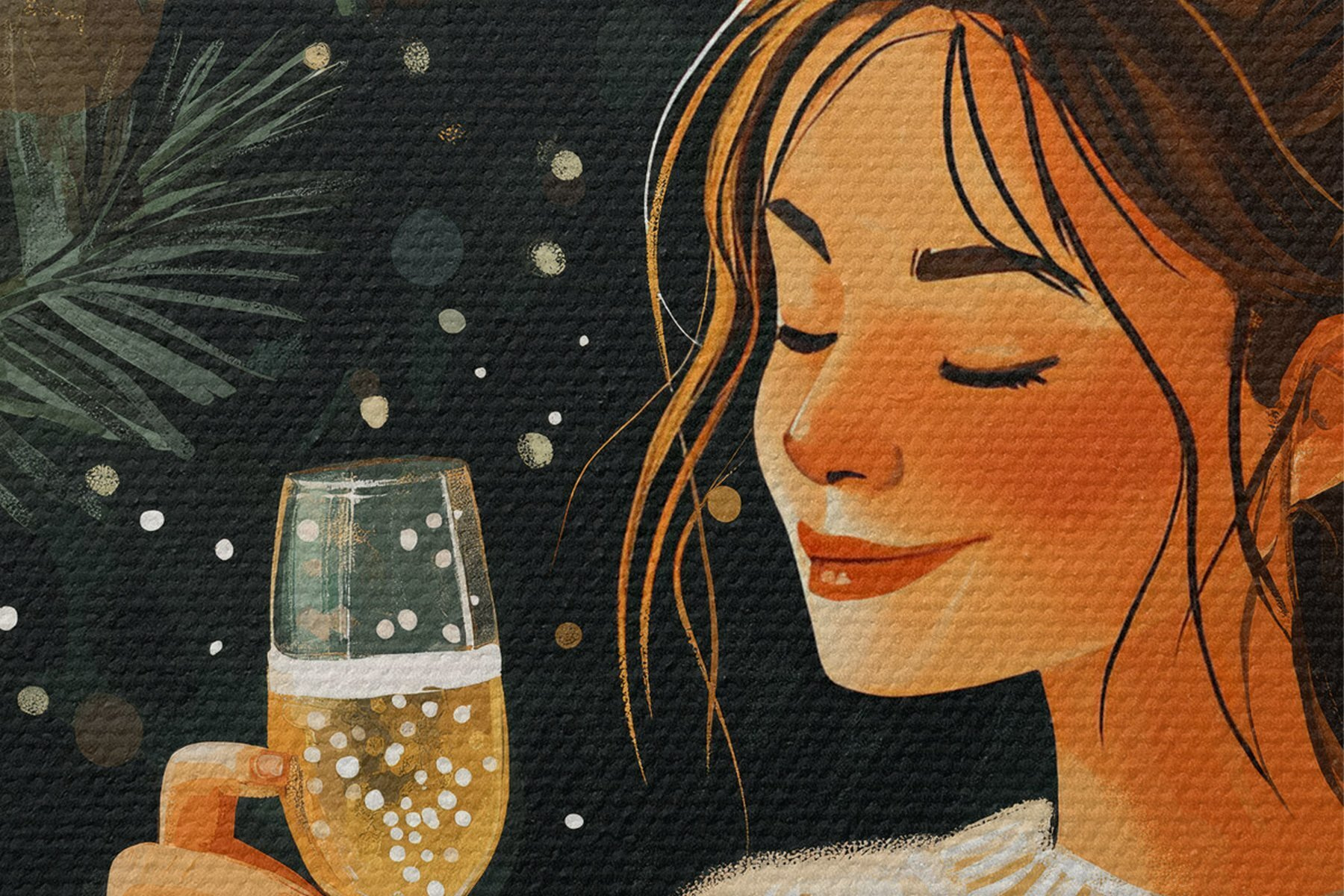 Afbeelding Een meisje met een glas champagne op oudejaarsavond Nr r42102