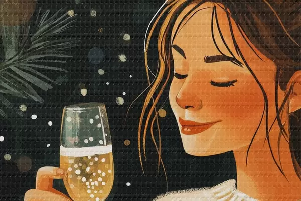 Afbeelding Een meisje met een glas champagne op oudejaarsavond Nr r42102