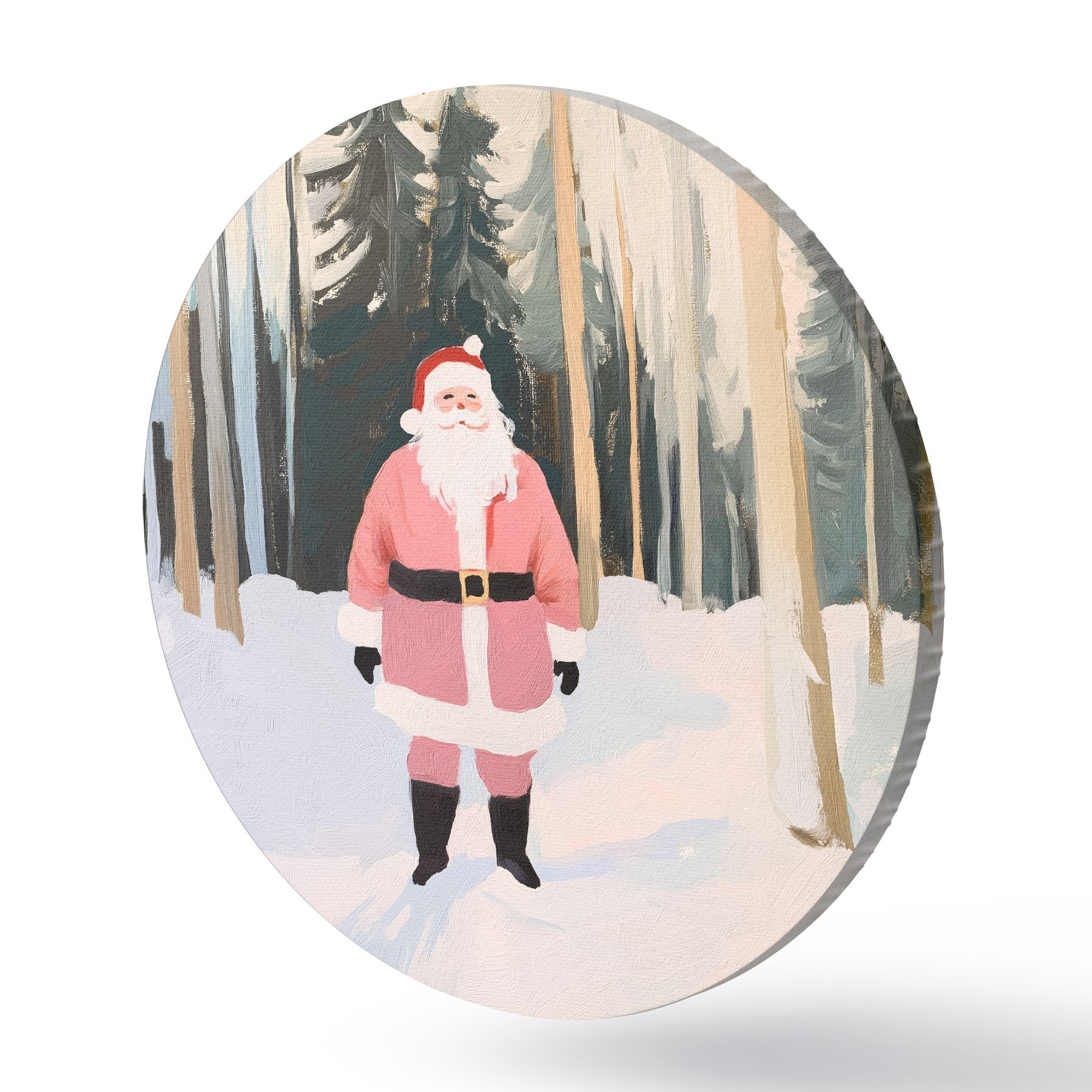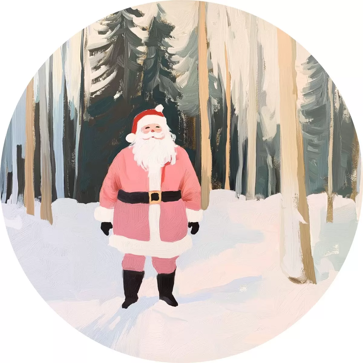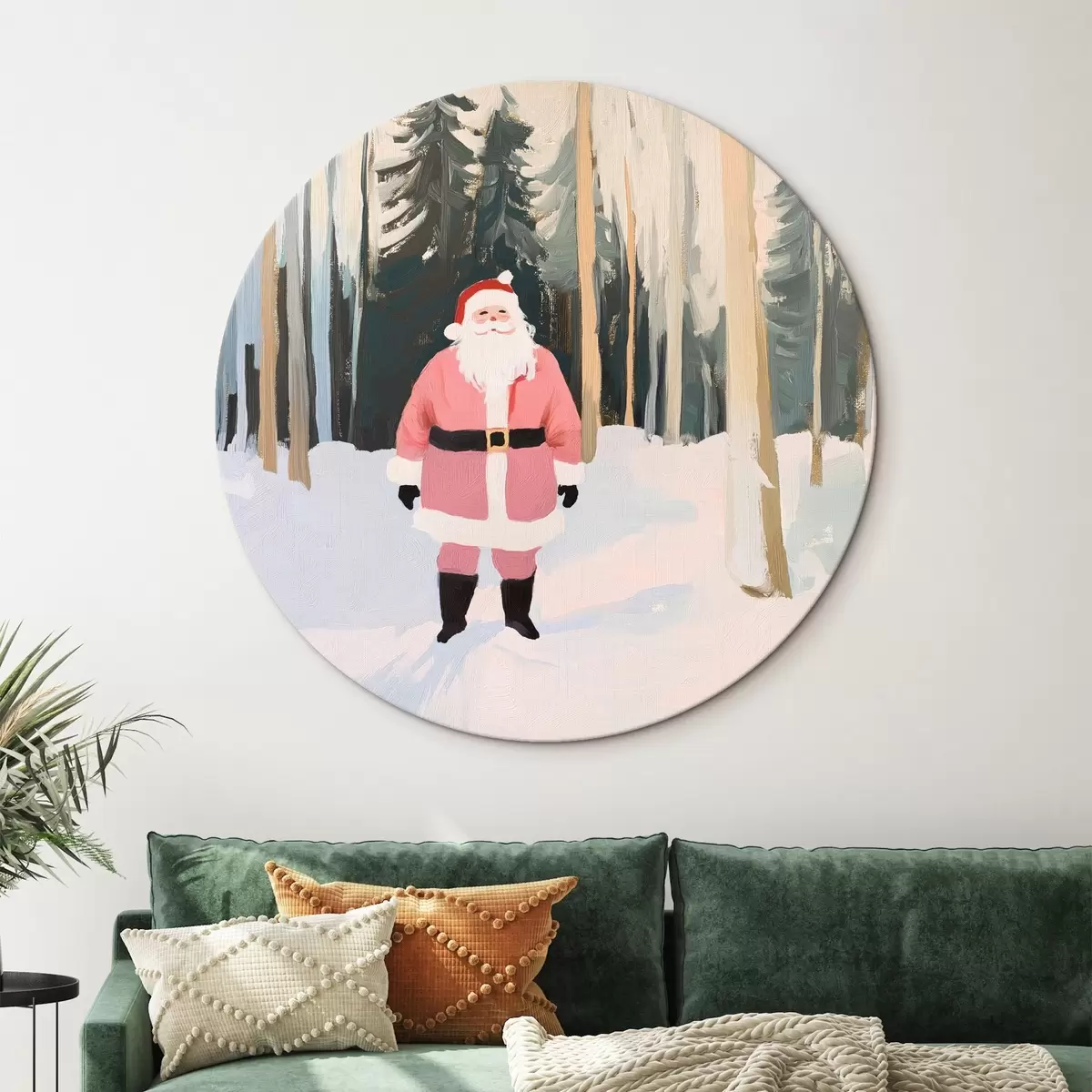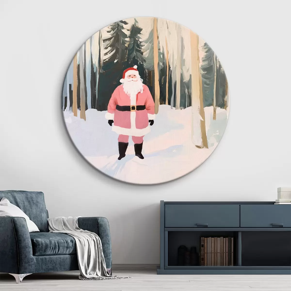 Ronde schilderijen De kerstman in het kerstbos r42103