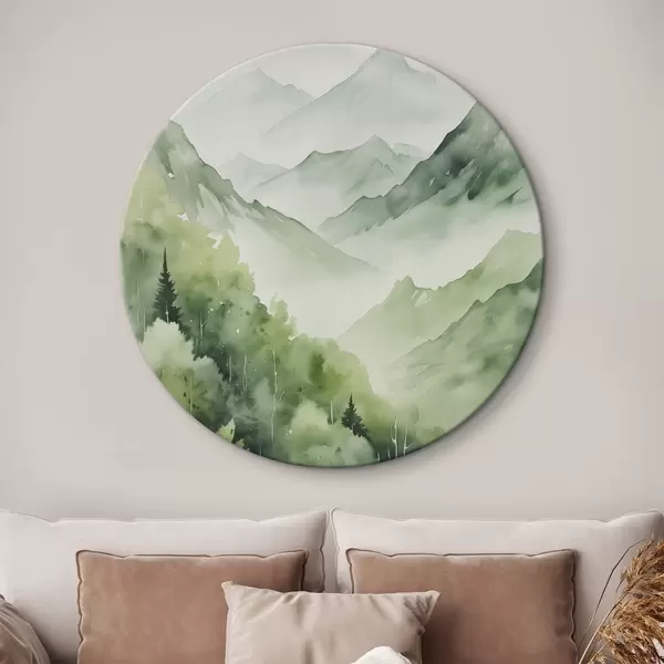 Ronde schilderijen Loofbos in de bergen imitatie van aquarel r42122