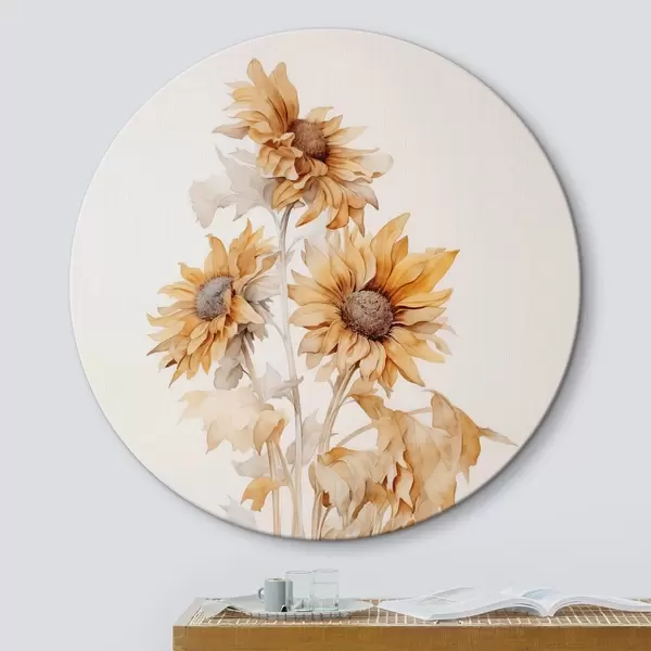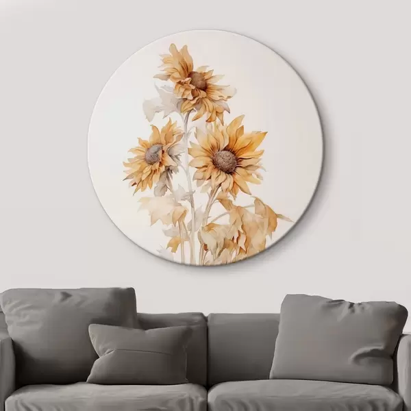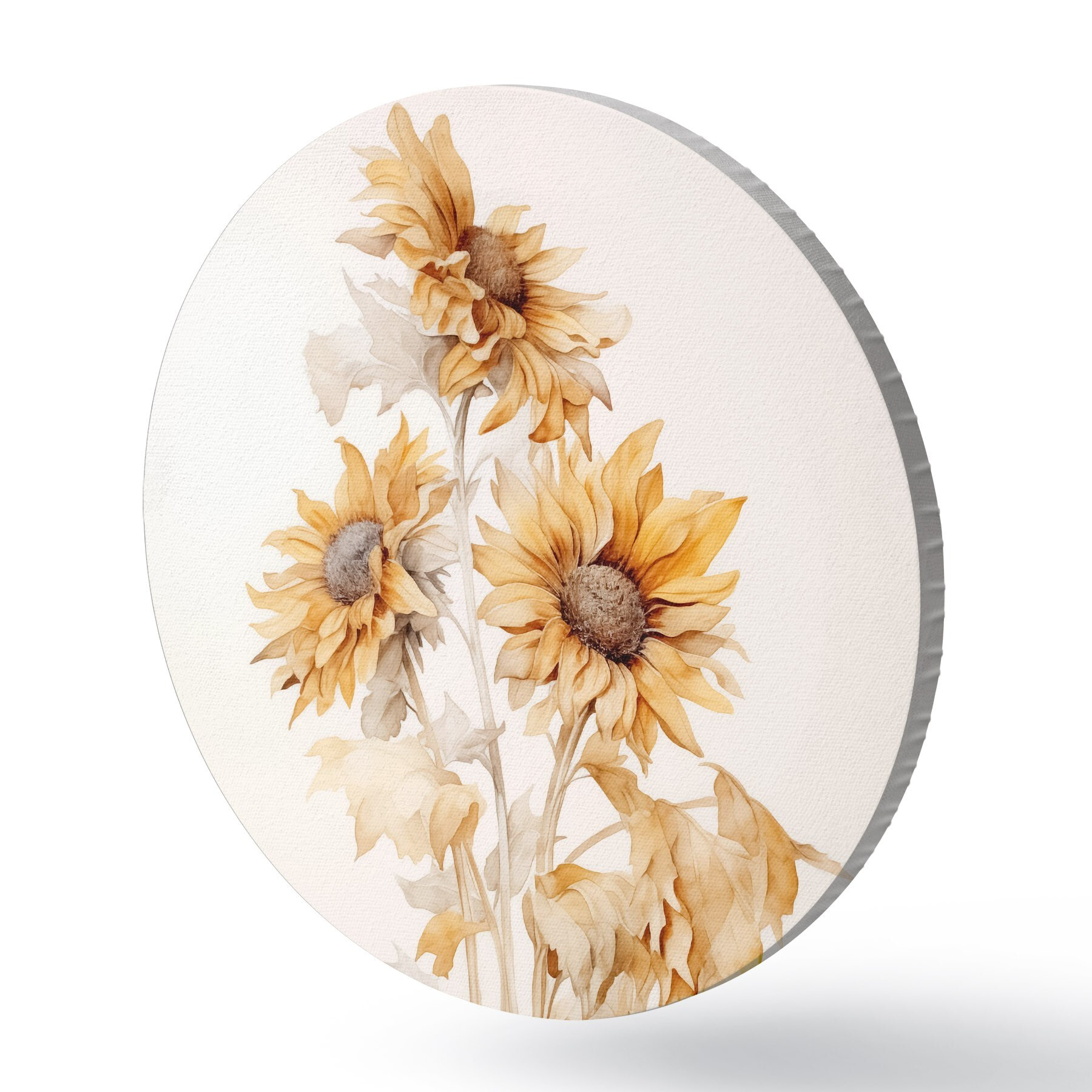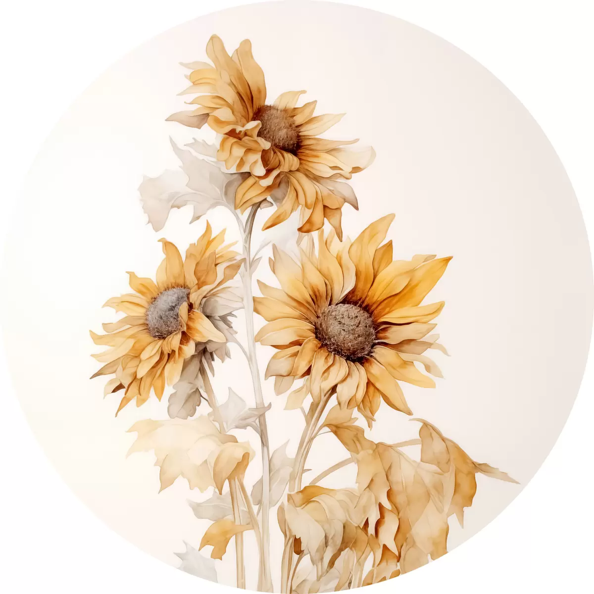 Ronde schilderijen Zonnebloemen imitatie aquarel r42127