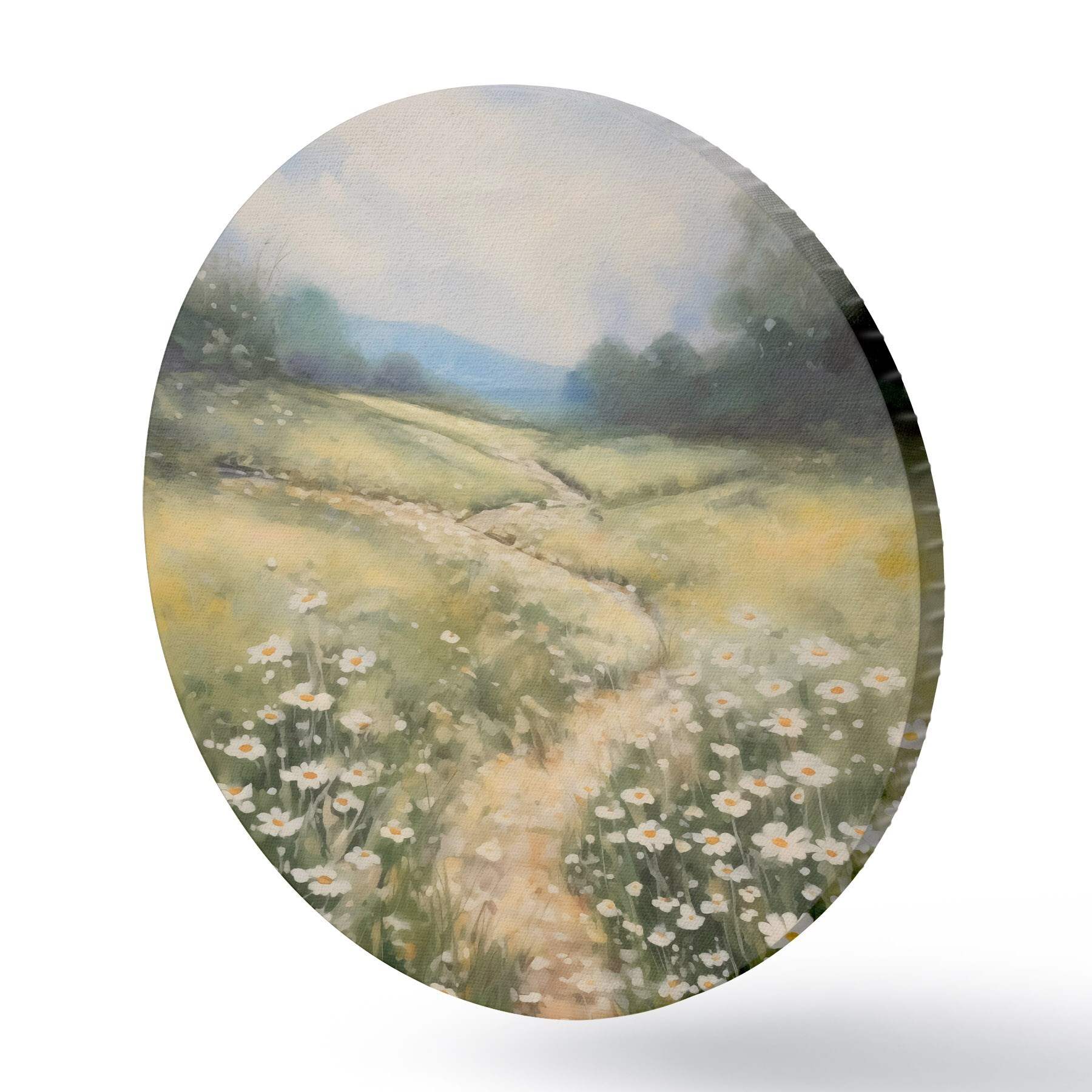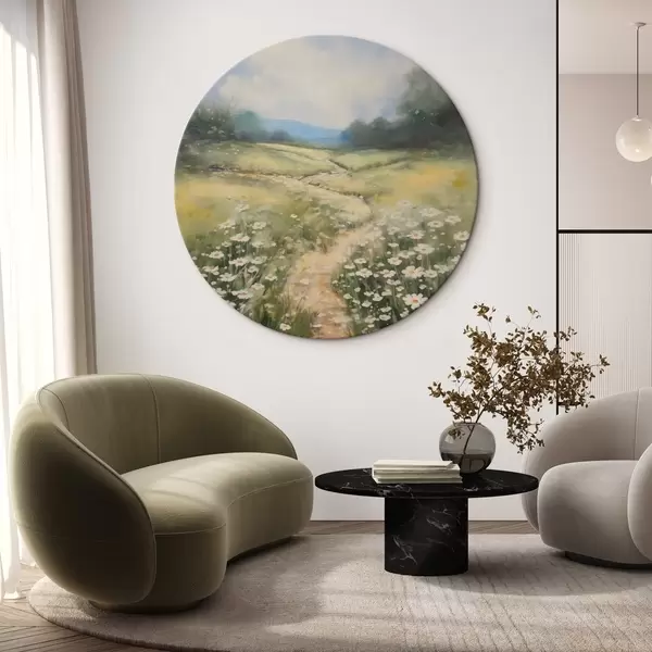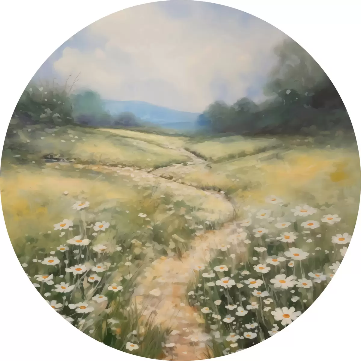 Ronde schilderijen Weide met madeliefjes imitatie van schilderij r42134
