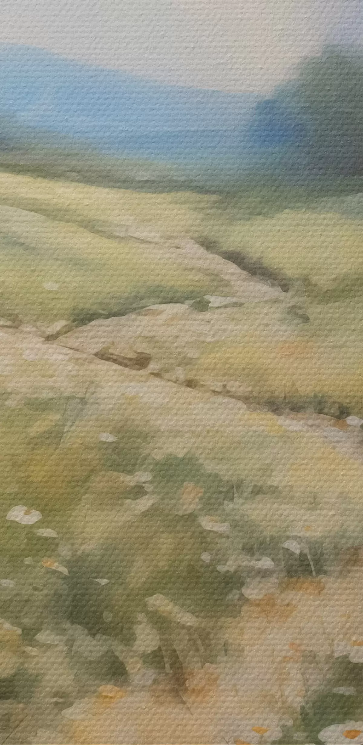 Het schilderij kan direct na ontvangst worden opgehangen. Het schilderij wordt opgespannen op een 2 cm breed houten spieraam.