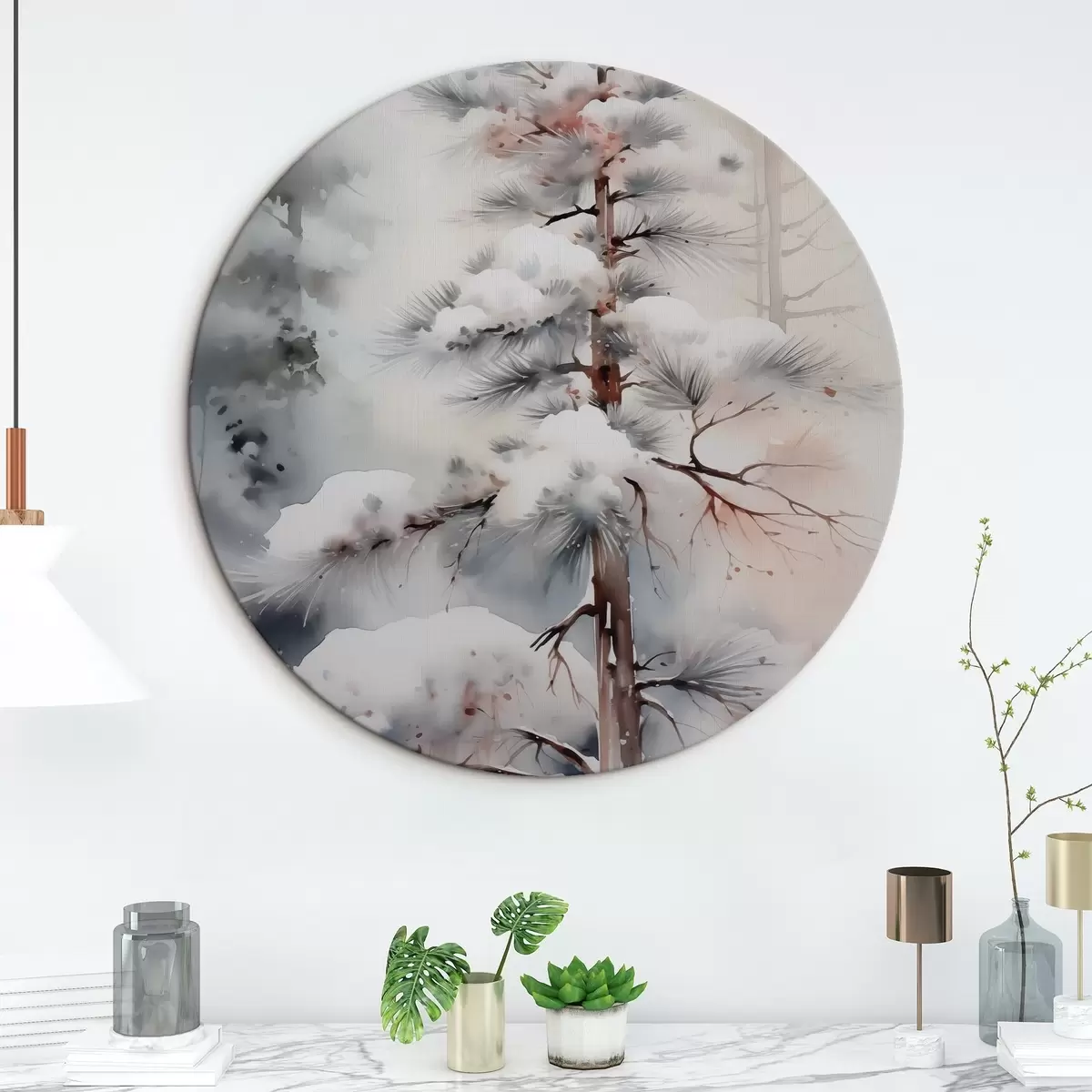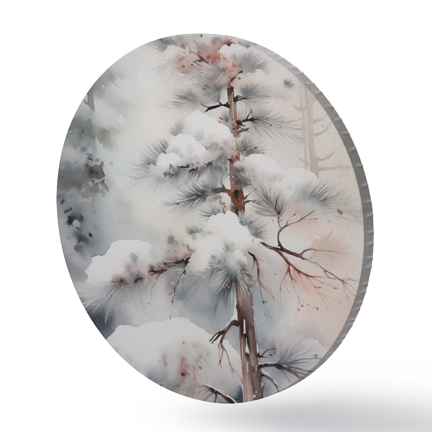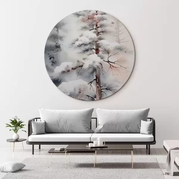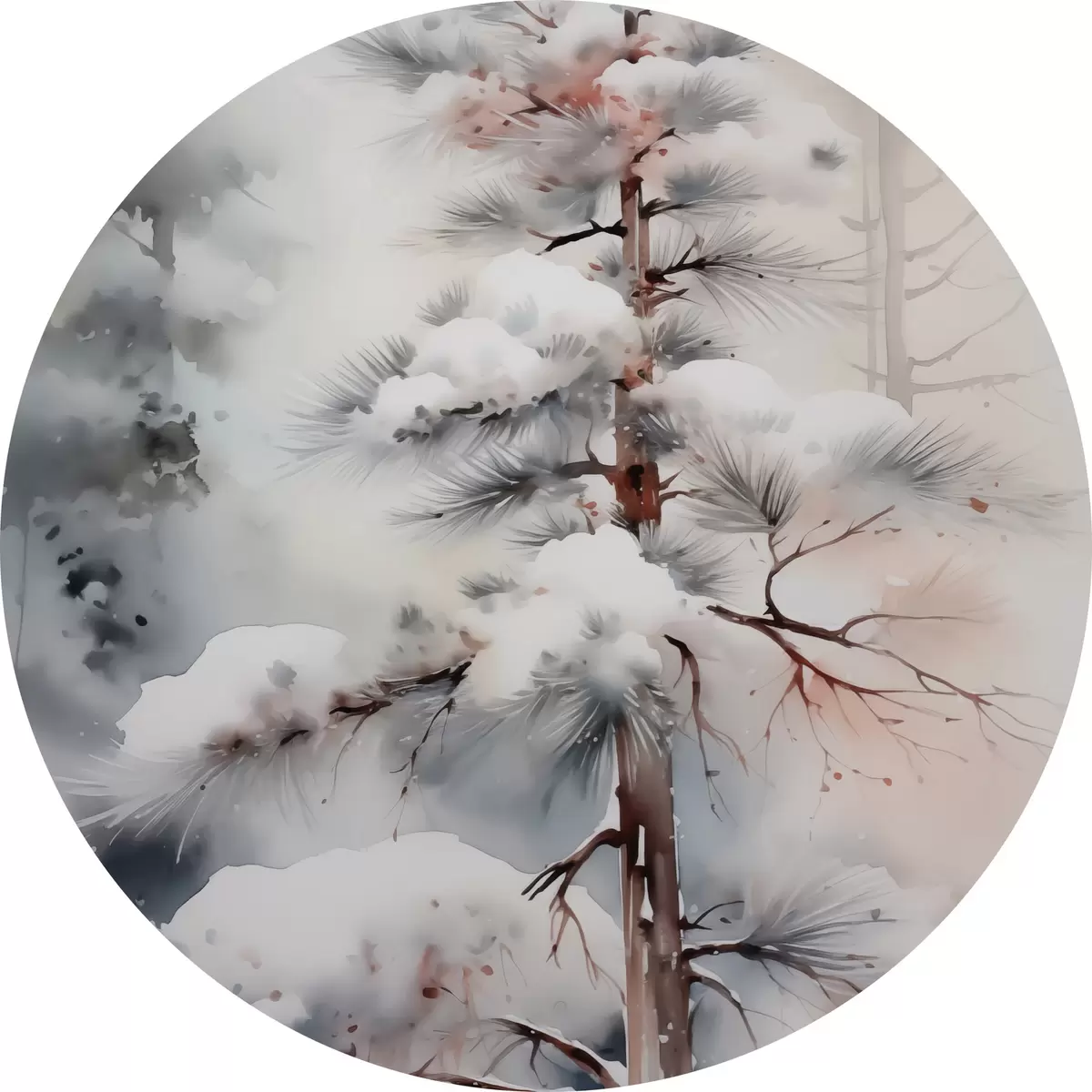 Ronde schilderijen Boom in besneeuwd bos imitatie van aquarel r42139