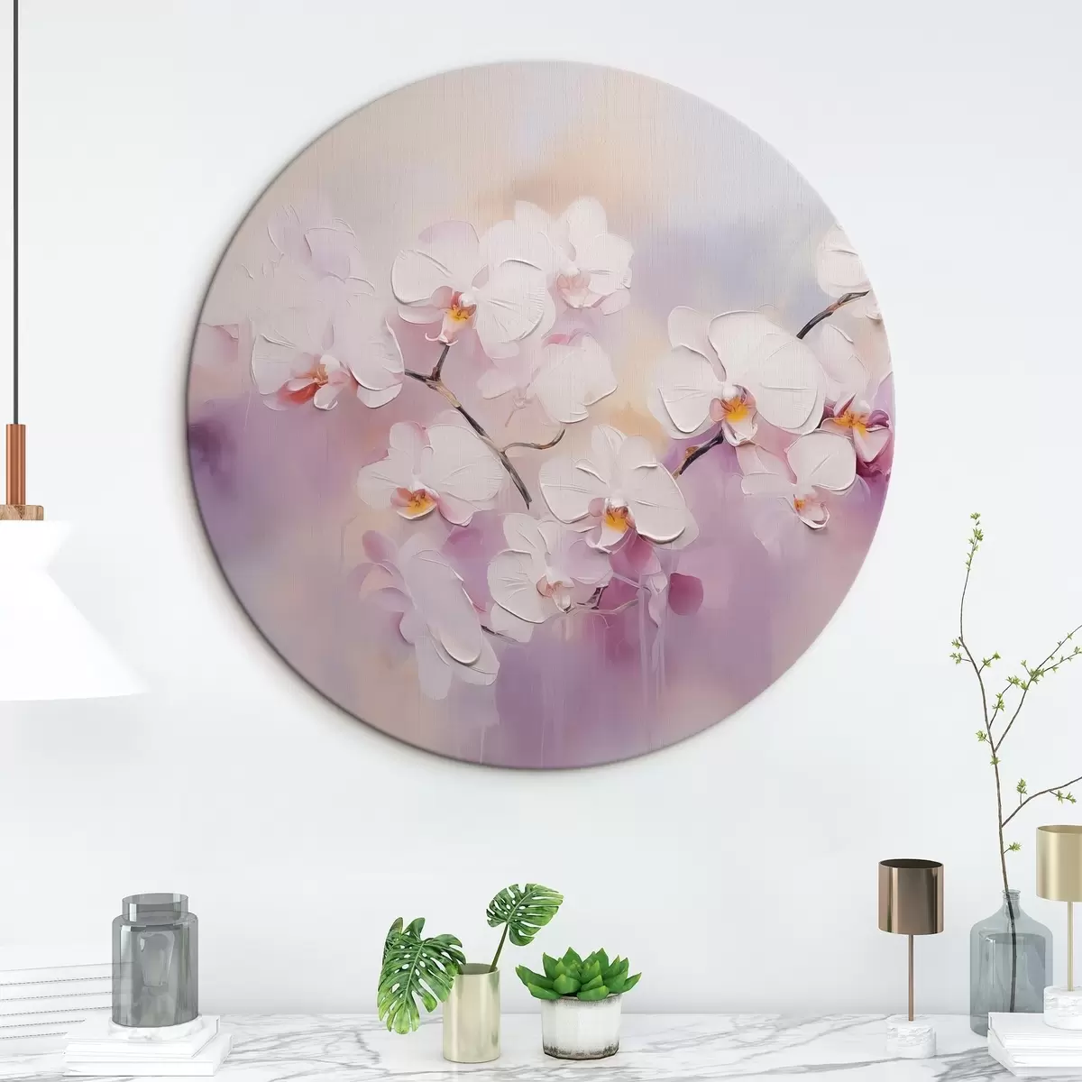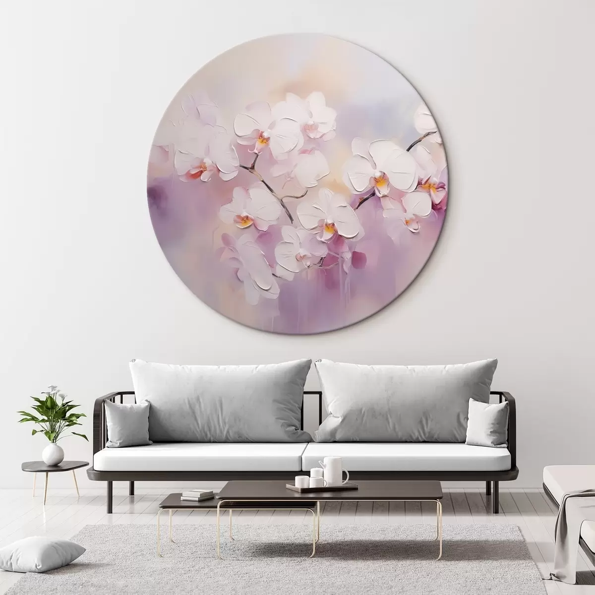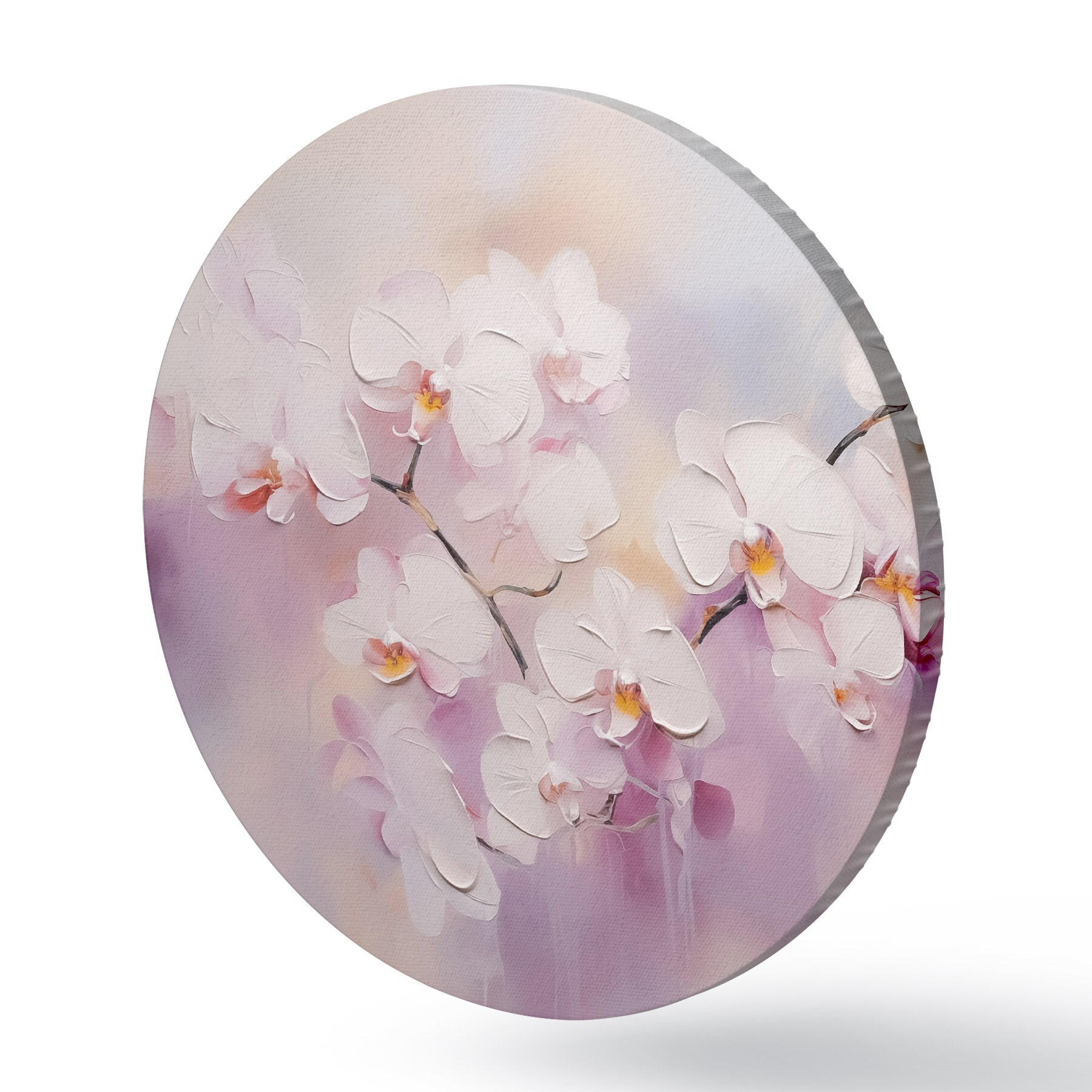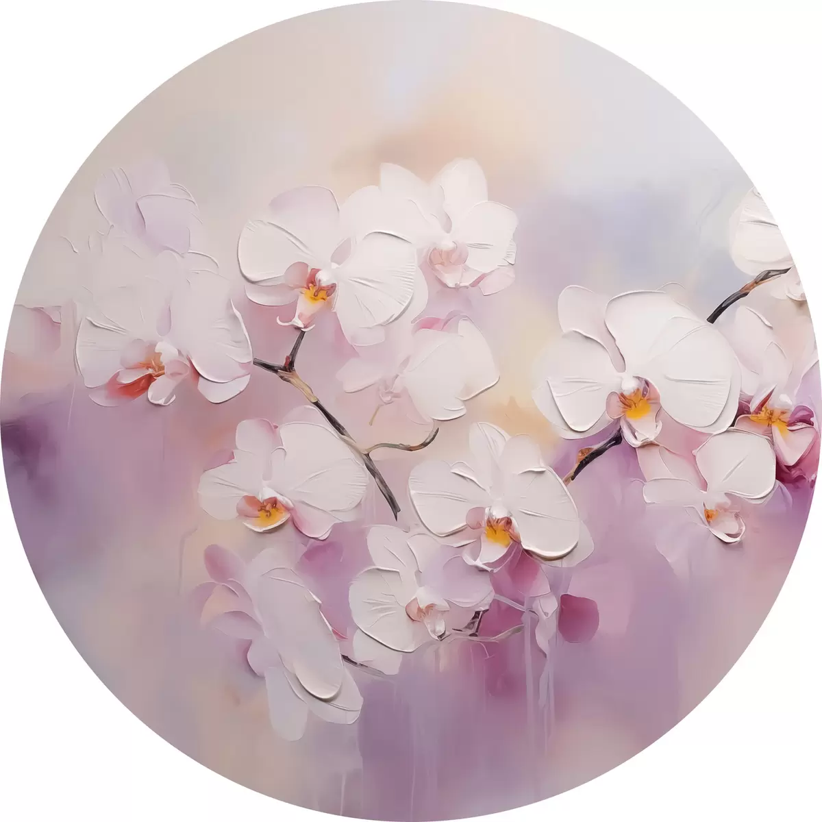 Ronde schilderijen Tak met witte orchideeën imitatie van schilderij r42141