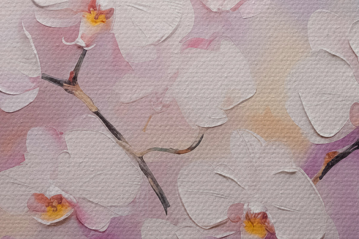 Afbeelding Tak met witte orchideeën imitatie van schilderij Nr r42141