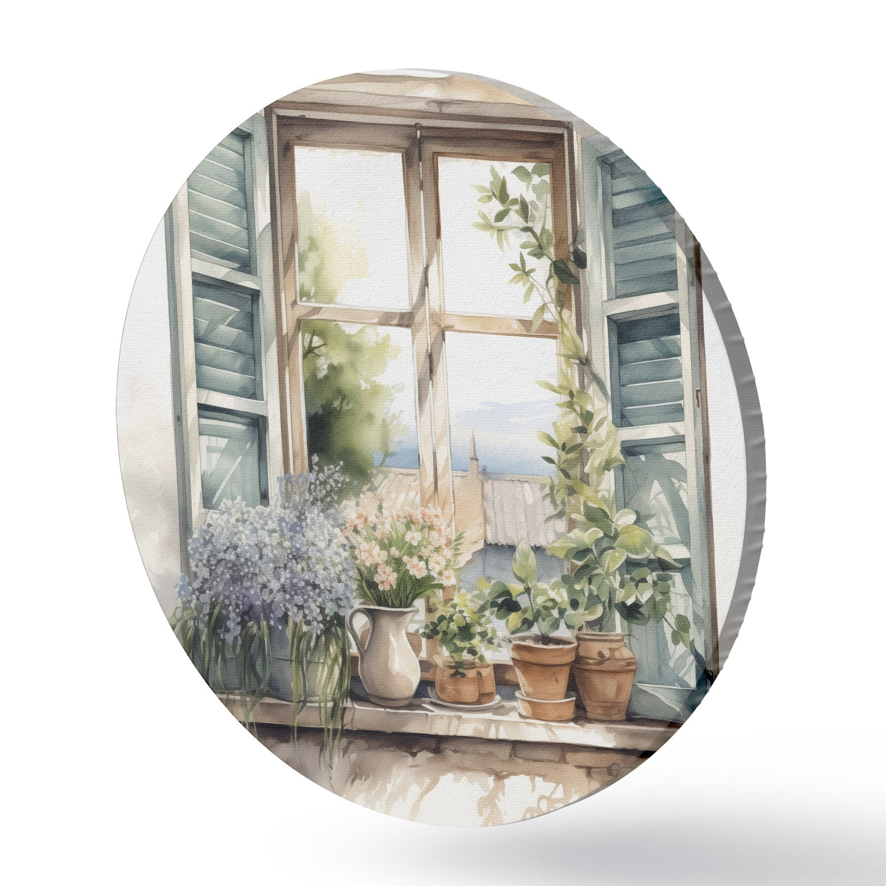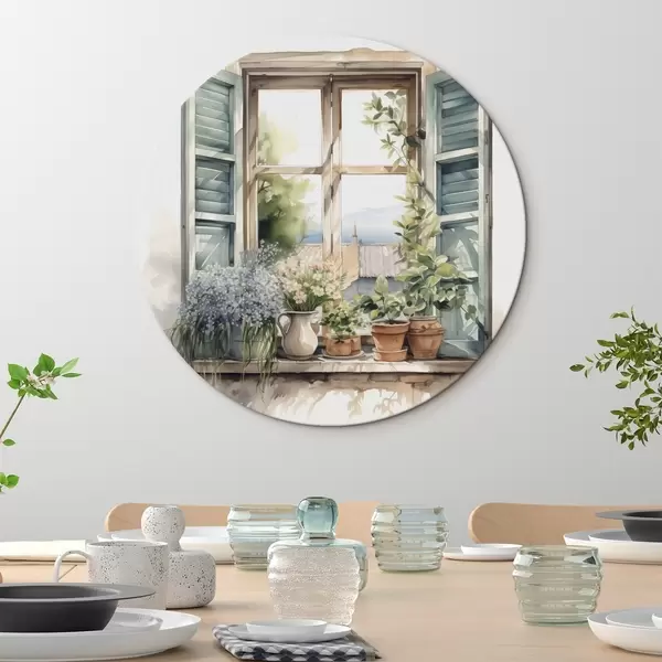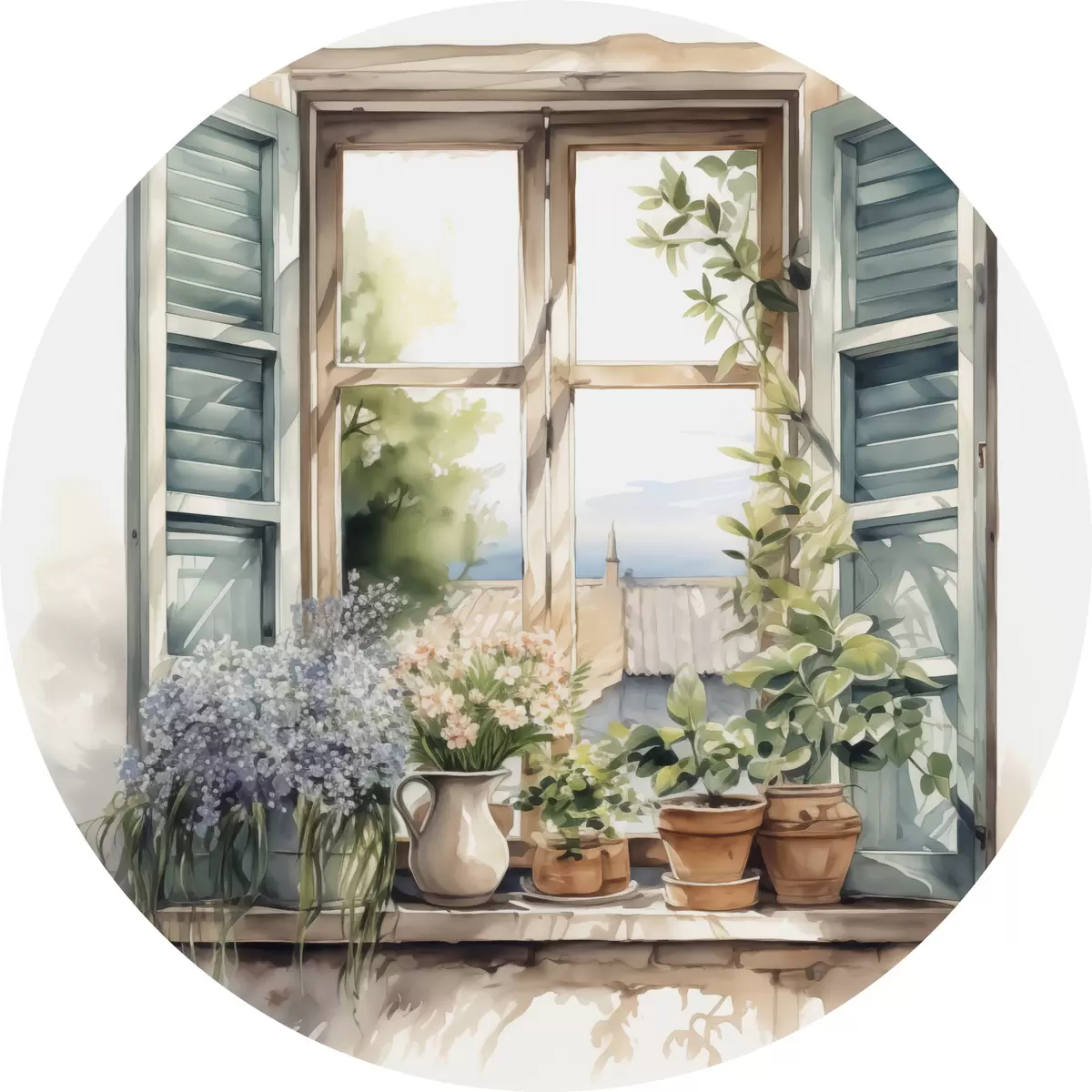 Ronde schilderijen Vegetatie op de vensterbank imitatie van aquarel r42144