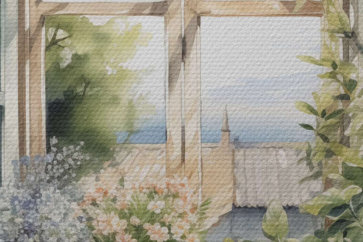 Afbeelding Vegetatie op de vensterbank imitatie van aquarel Nr r42144
