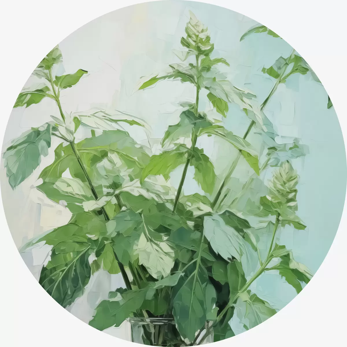 Ronde schilderijen Vegetatie in een transparante vaas imitatie van schilderij r42148