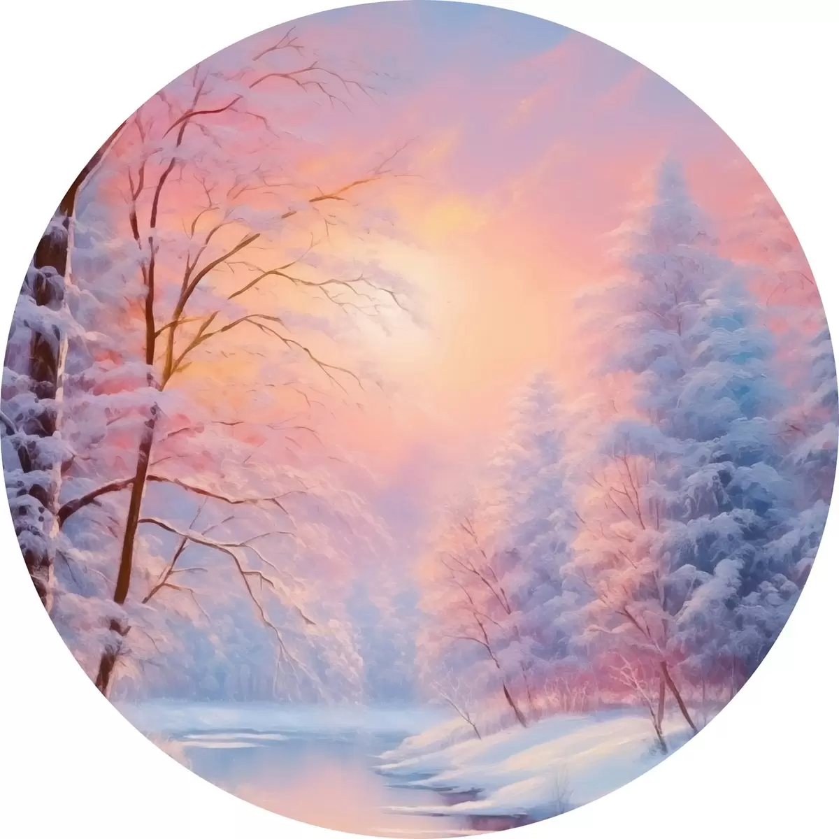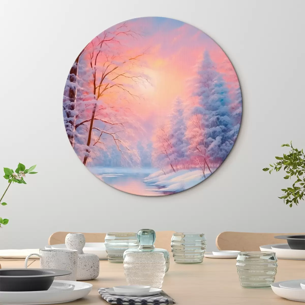 Ronde schilderijen Wintersprookje bij de rivier r42149