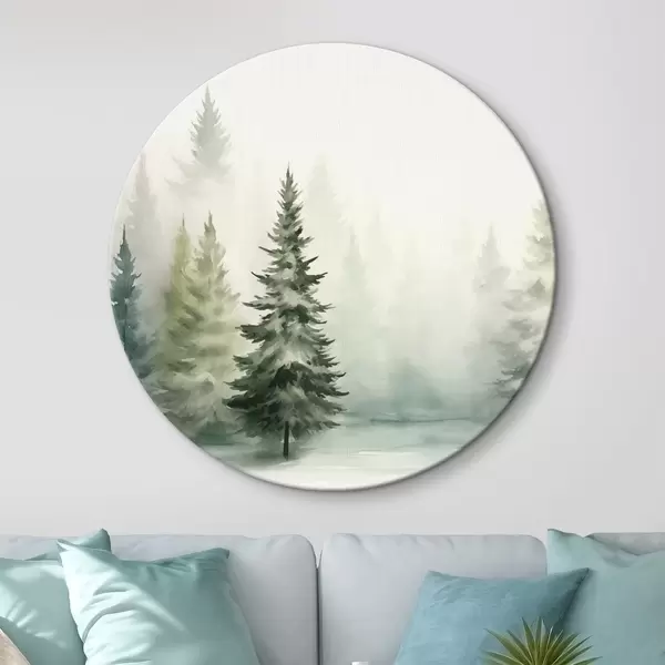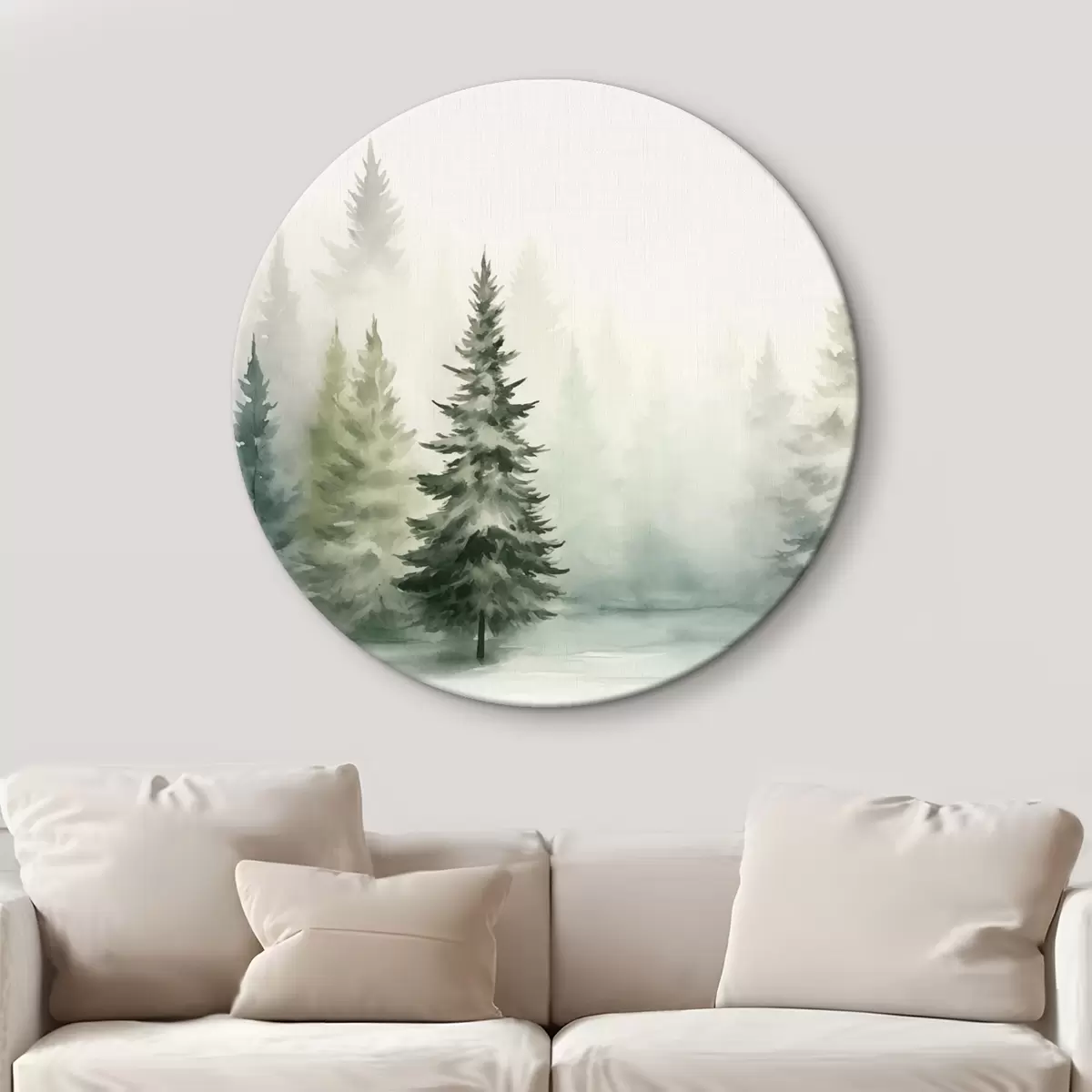 Ronde schilderijen Mistig bos van dennenbomen r42154